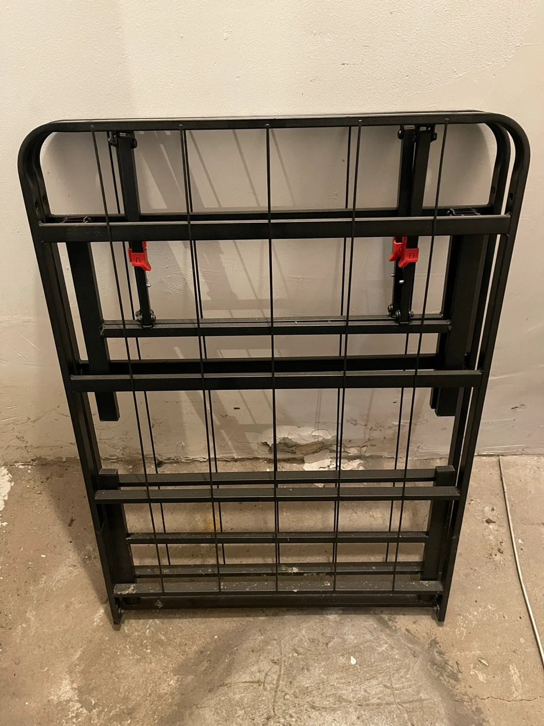 This is a sturdy two metal folding bed frames. It's black and designed for easy storage and setup. Supports a mattress securely.