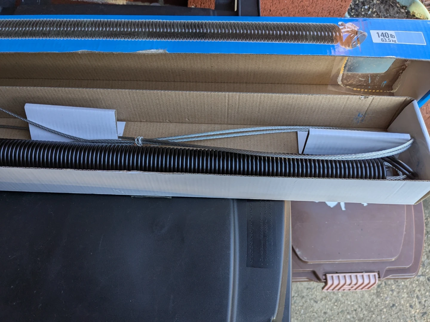These are Everbilt 140 lb garage door extension springs. They have a maximum overall safe stretched length of 67 inches. They come with cables and are designed for garage doors. There are 2 steel safety cables, but only 1 spring.