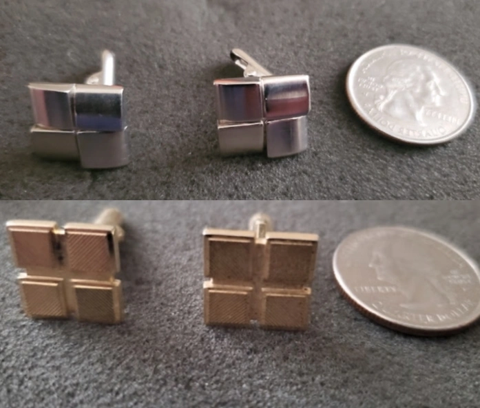 kenneth Cole men's cufflinks. One pair silver tone, one pair gold tone. Square design. Good condition. price includes both pair