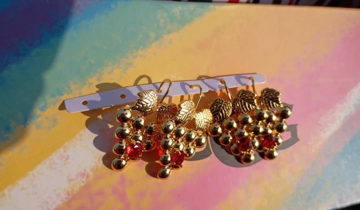 Gold electroplated hypoallergenic Western new style grape earring red lab made ruby 50$ each pair
