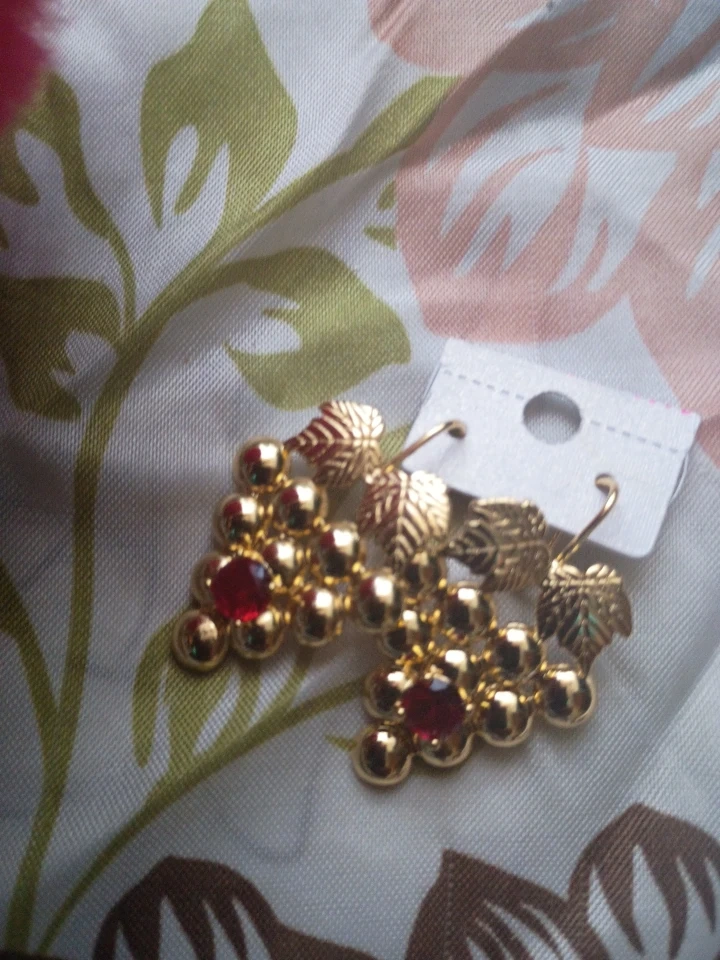 Gold electroplated hypoallergenic Western new style grape earring red lab made ruby 50$ each pair