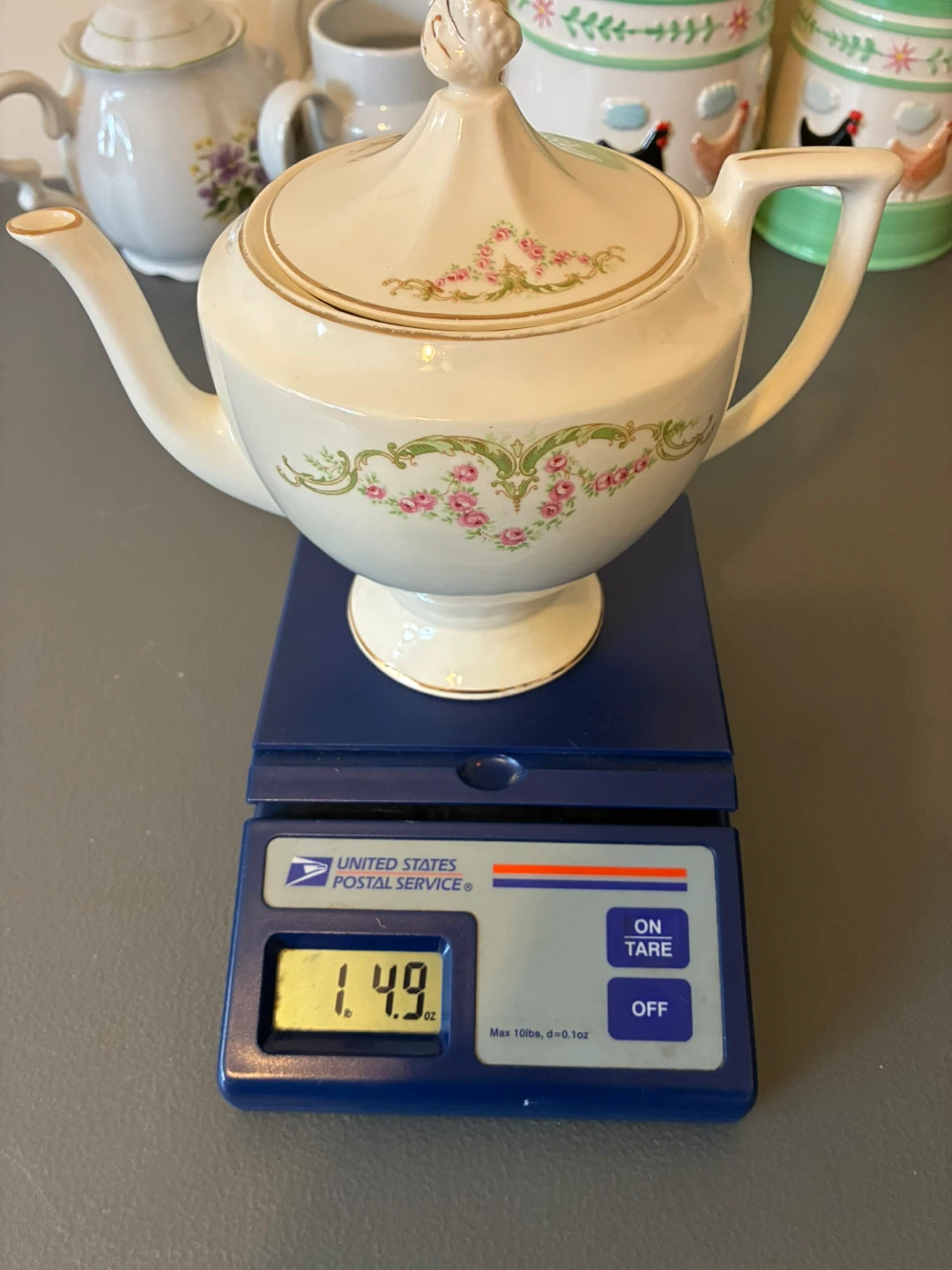 1 / 101 / 10Buy & SellWhite Teapot with Pink Floral DesignWhite Teapot with Pink Floral Design$13Classic white teapot with a delicate pink floral pattern and gold trim. It has a sturdy handle and a matching lid. Ceramic material.ConditionGoodWHERE TO MEETPorch pickupView MapSELLERverifiedMichelleWorth750 reviews0 chatsΒ·0 favoritesΒ·8 viewsSEND CHAT TO SELLERHi Michelle! Iβm interested in your listing.Hi Michelle! Iβm interested in your listing.Get the Karrot app to chatSign In to chat