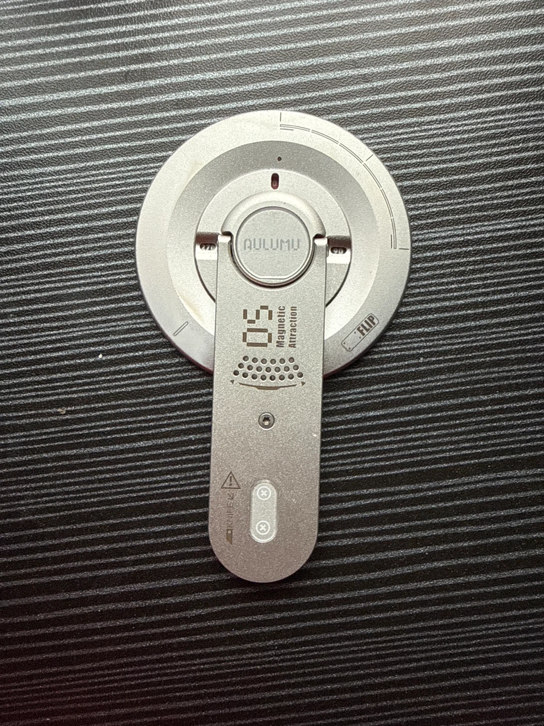 I’m selling an Aulumu magnetic phone holder. It's in great condition. This product only works with MagSafe, and it also has a box cutter knife and a 360 degree kick stand