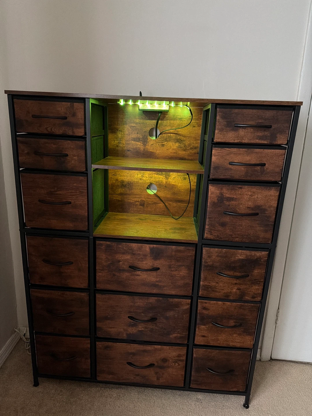Dresser with Built-in Power Outlet and LED Lights