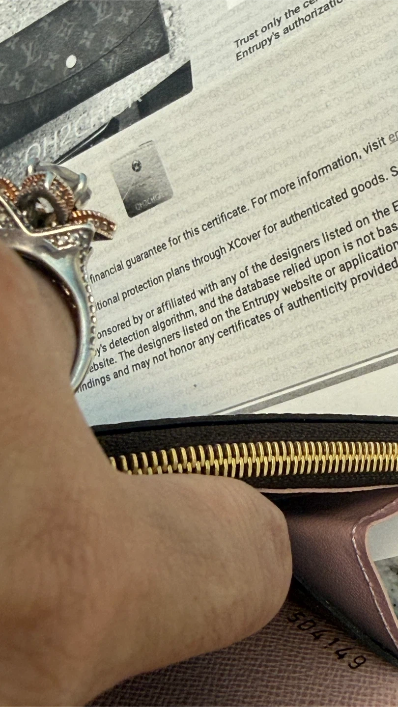 This is a Louis Vuitton long wallet in classic monogram canvas. It features a snap closure and a zippered coin pocket inside. Authenticity guaranteed by Entrupy certificate.