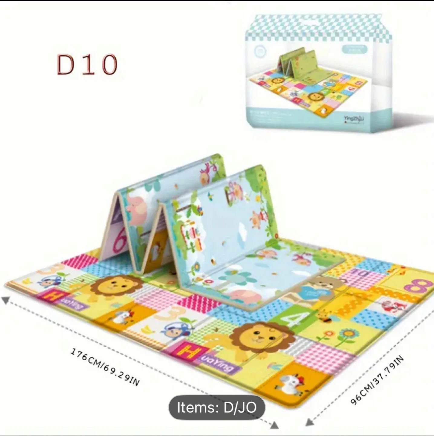 This colourful play mat is perfect for kids! It features numbers and animals, making it both fun and educational. It's easy to clean with its waterproof film, and it folds up for easy storage. Dimensions are 176 cm x 96 cm.