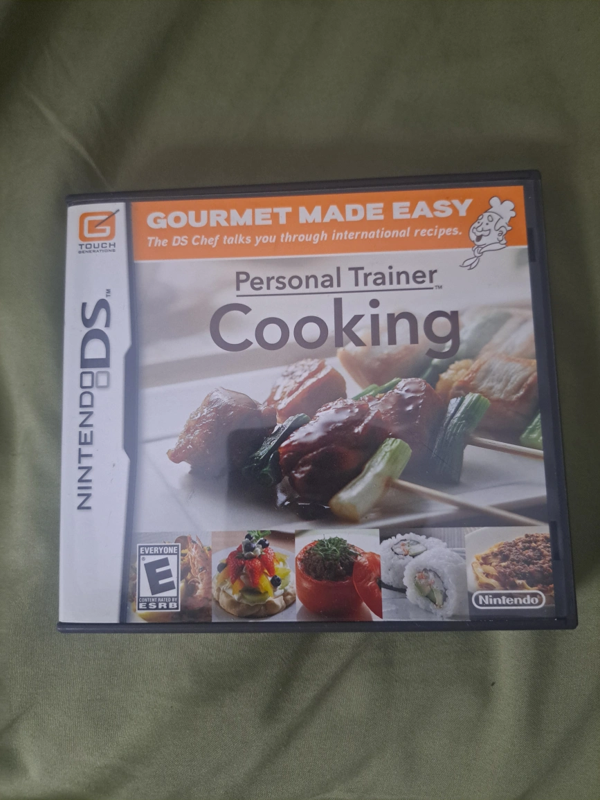 Selling a used Nintendo DS game, Personal Trainer: Cooking. It's a fun way to learn international recipes with the DS Chef guiding you through each step. The game is in good condition and includes the original case and game cartridge. Perfect for anyone looking to expand their culinary skills!