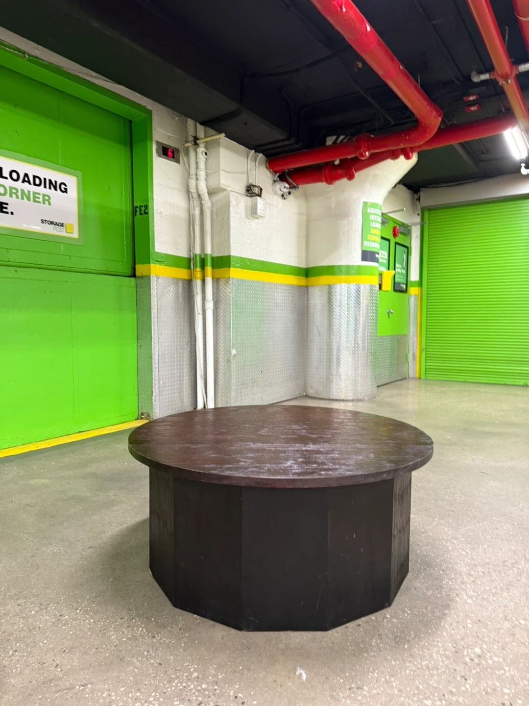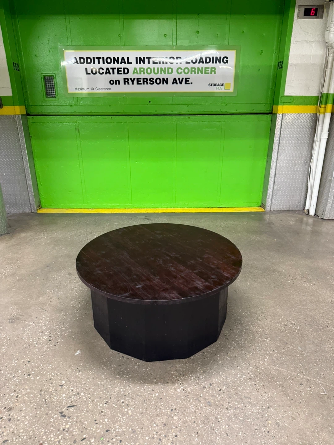 This table is in good used condition with normal wear and tear. It is a solid, durable piece of furniture (product weight: 81 lbs; weight capacity: 200 lbs).