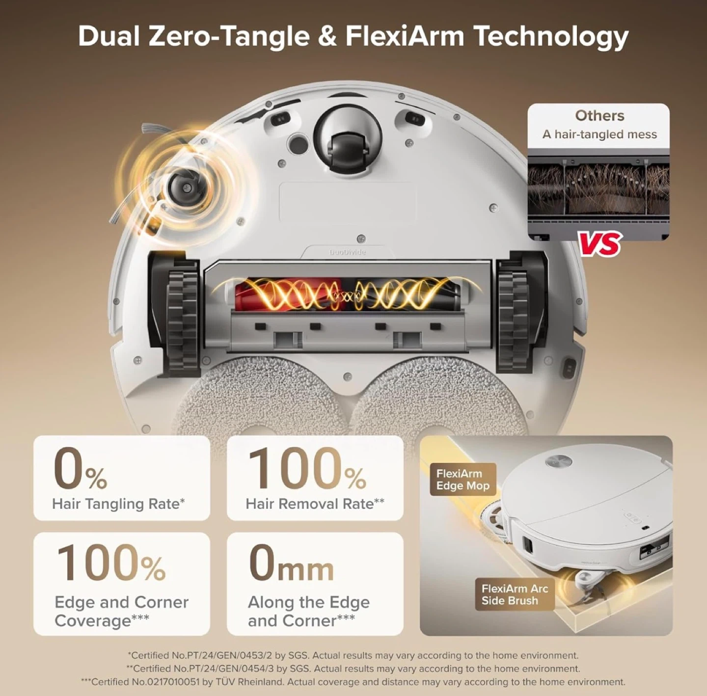 roborock Qrevo CurvX Robot Vacuum and Mop, 22,000Pa Suction, 3.14’’ Ultra Slim, Zero-Tangling Design, Reactive AI Obstacle Recognition, AdaptiLift Chassis, Auto Hot Water Mop Washing & Drying