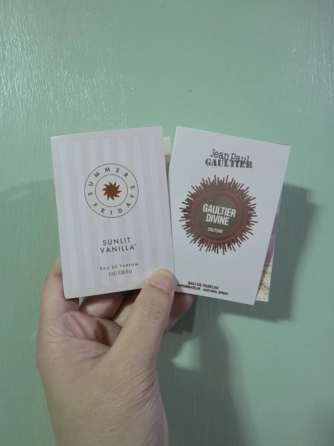 Includes samples of 'Summer Friday Sunlit Vanilla' (2 ml) and 'Gaultier Divine Couture' (1.5 ml). Each sample is an eau de parfum spray. Perfect for trying out new scents!