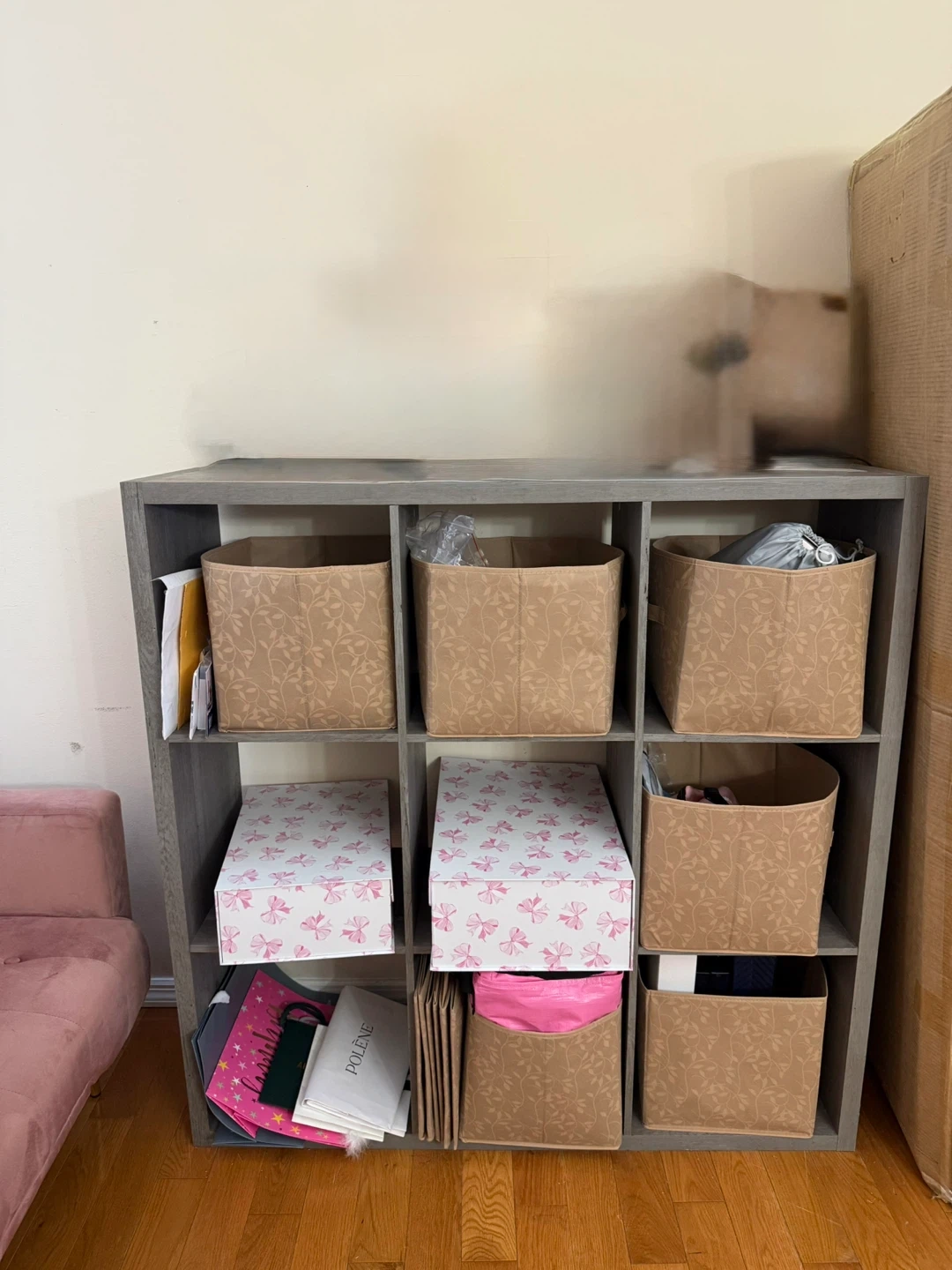 Selling a gray 9-cube storage organizer. It's in great condition and ready to help you get organized! Perfect for any room in the house