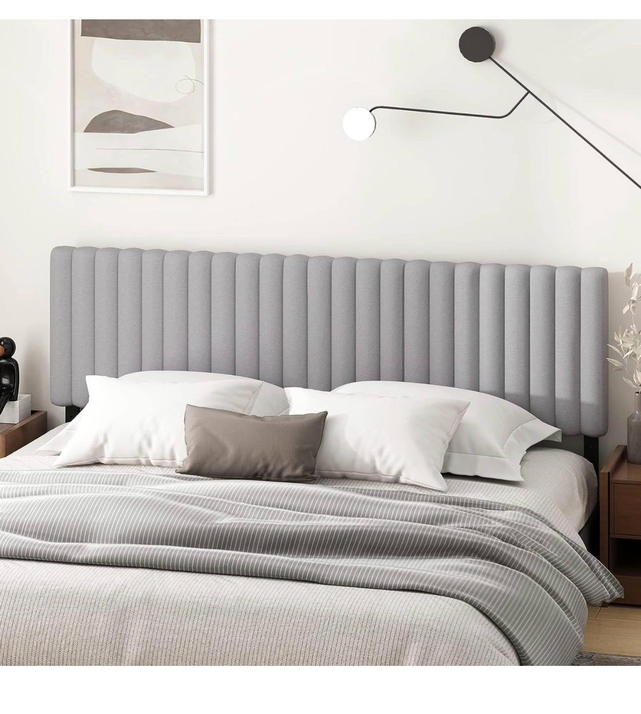 Furinno Roanne Upholstered Tufted Headboard, King, Glacier
