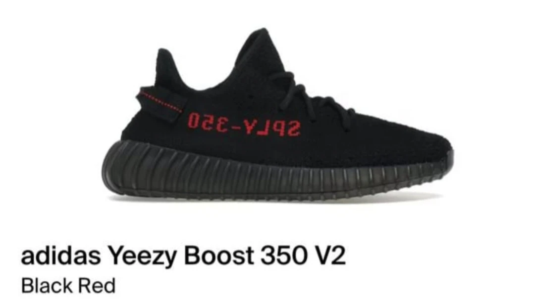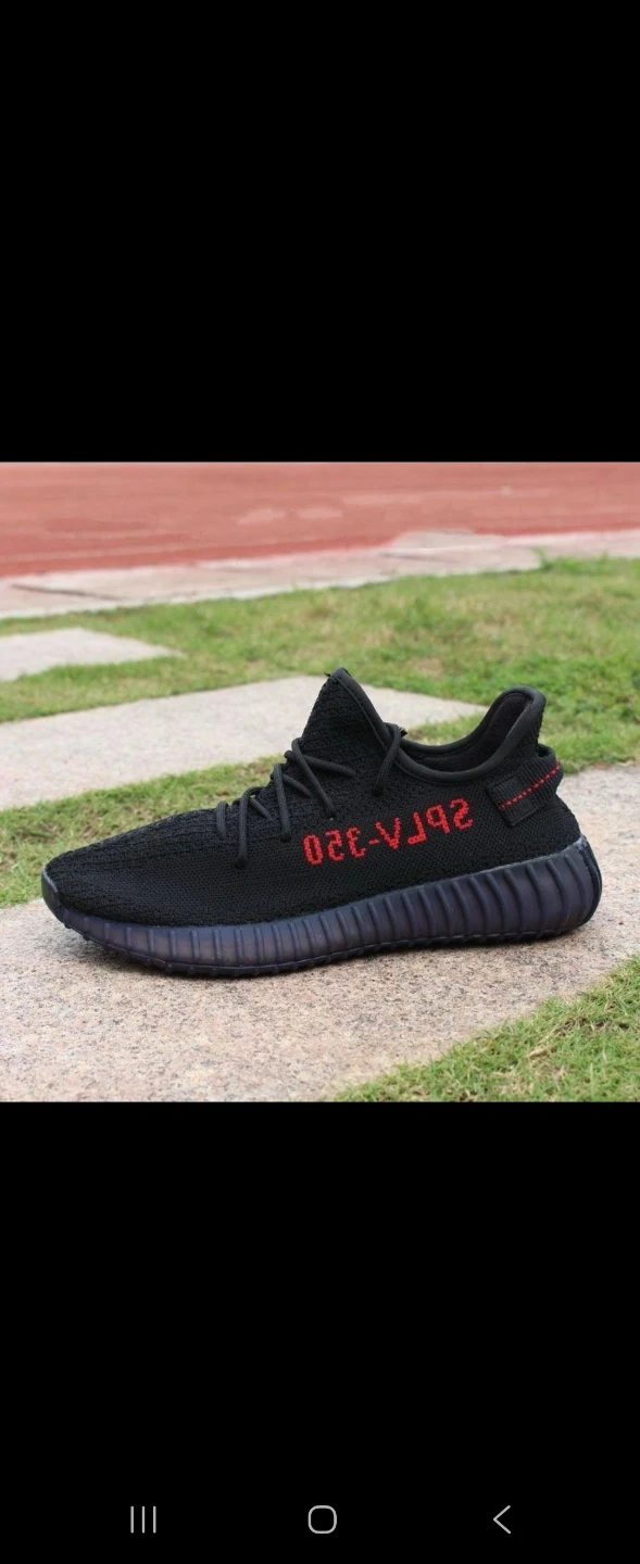 Adidas Yeezy Boost 350 V2 in the "Black Red" colorway. These sneakers feature a black knit upper with red "SPLY-350" text. The iconic Boost cushioning provides comfort and support.