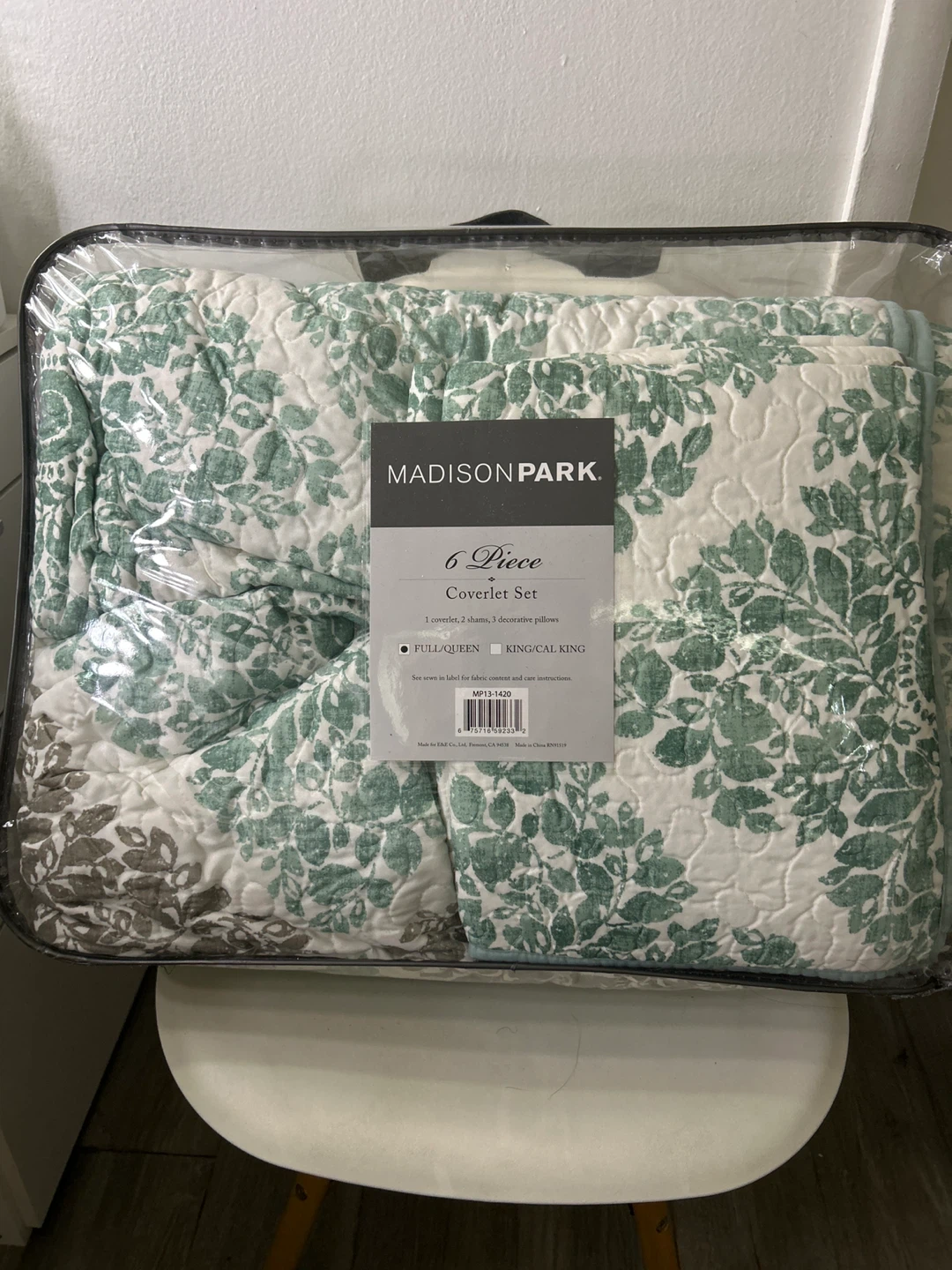 This is a Madison Park 5 Piece Coverlet Set. It includes 1 coverlet and 2 decorative pillows. The set is for a Full/Queen or King/Cal King bed.