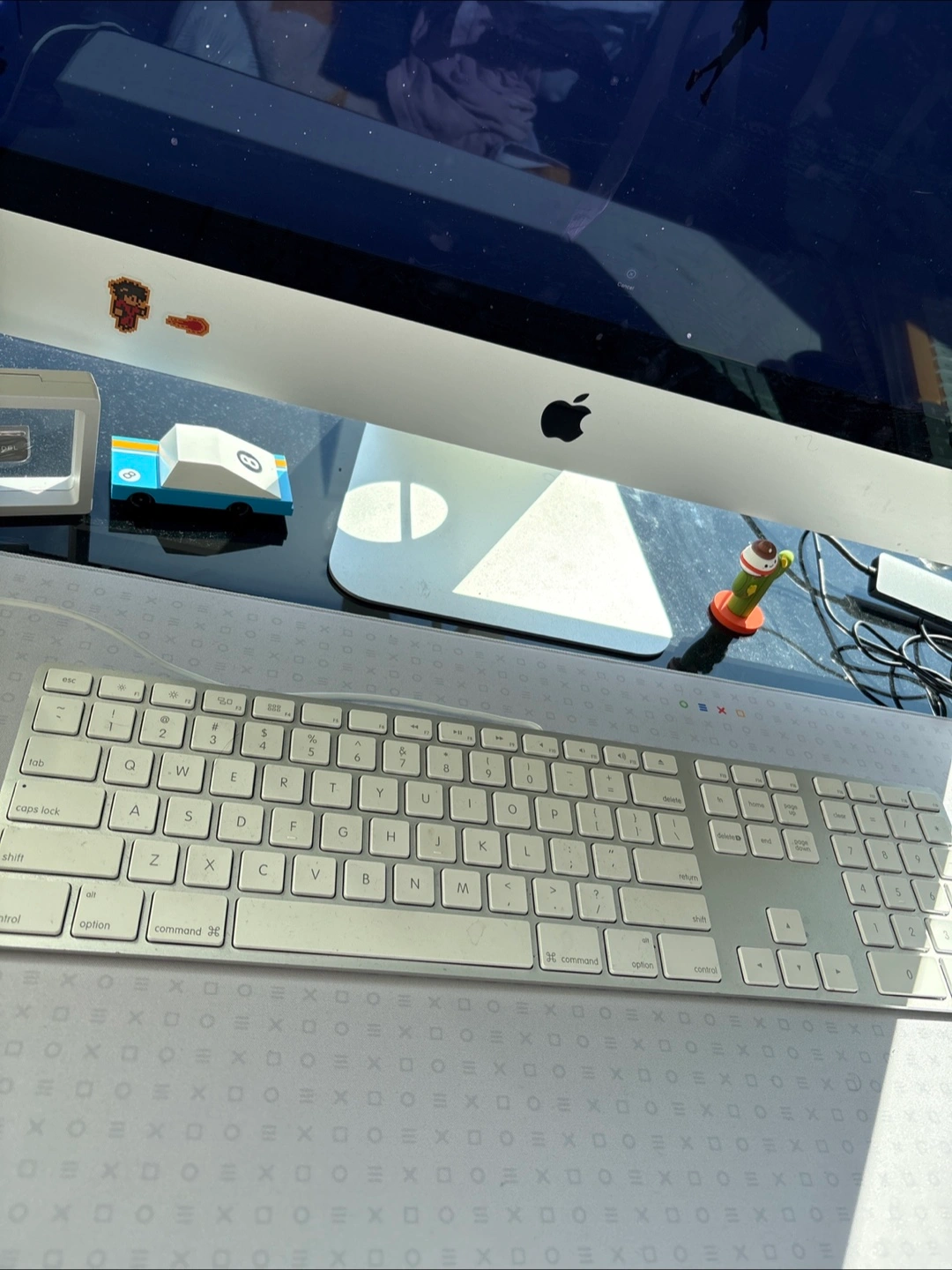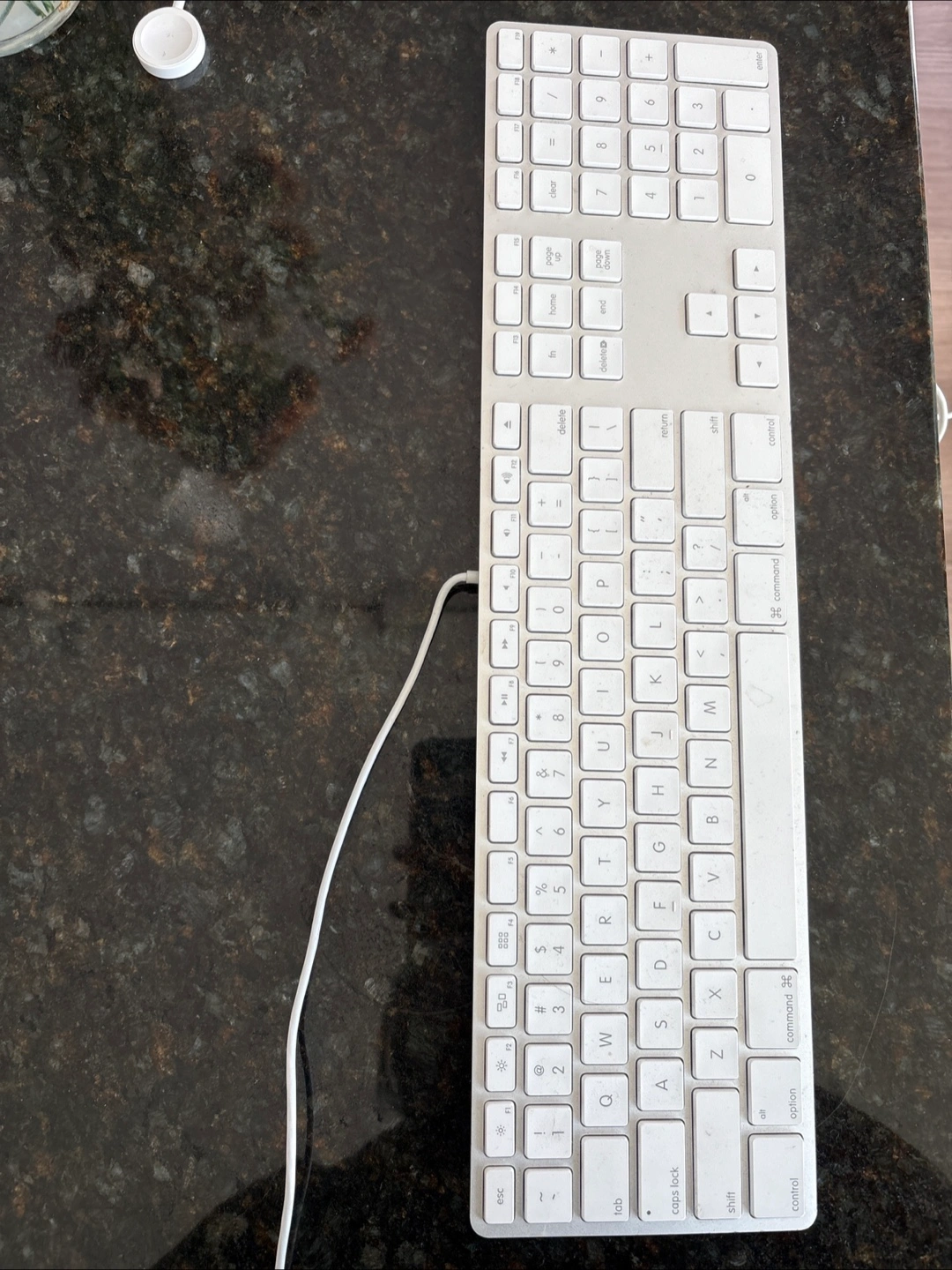 Selling an Apple wired keyboard with a numeric keypad. It's in good condition and ready for a new home! Perfect for anyone who prefers a traditional keyboard layout with the convenience of a number pad.