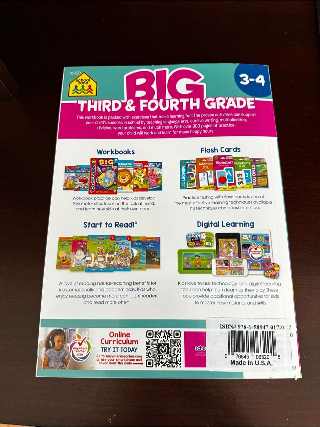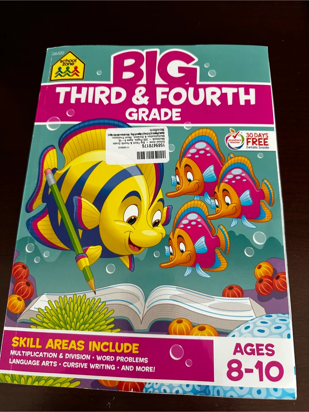 This workbook is packed with fun learning activities. It covers multiplication, division, word problems, and language arts. It's great for kids ages 8-10. Recommended for students in third and fourth grade.