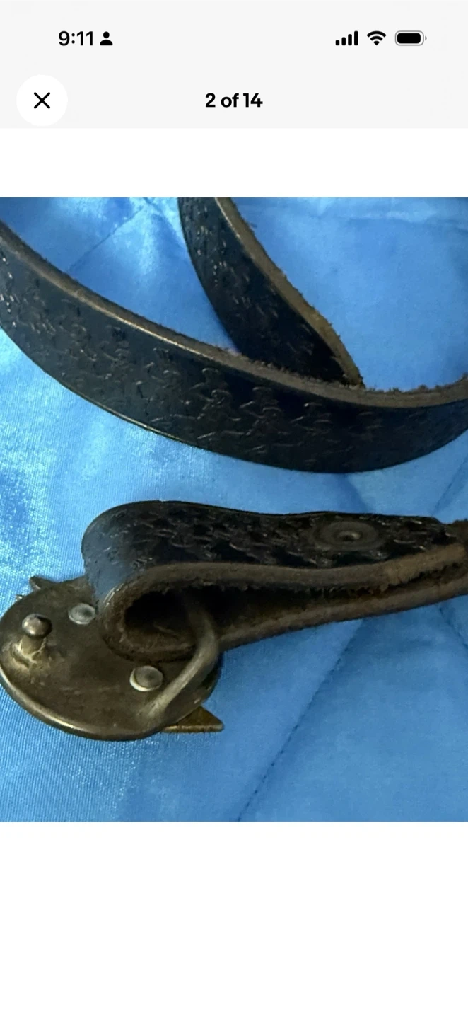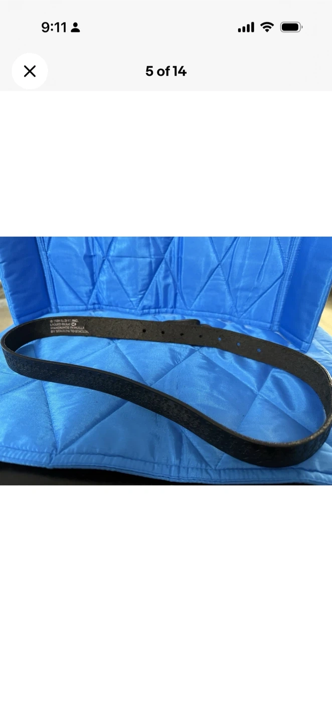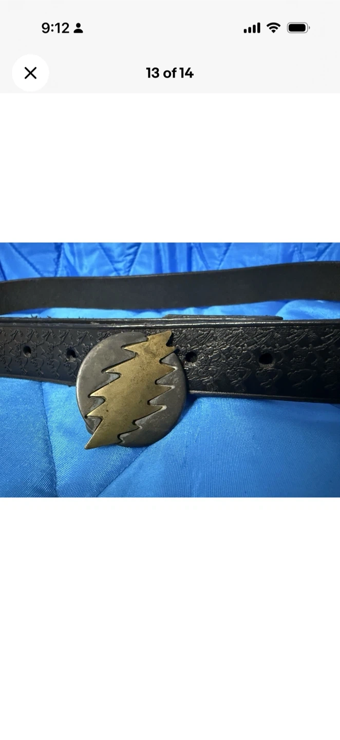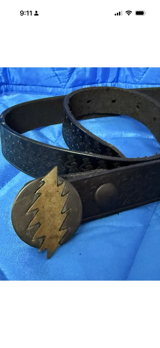Vintage 1991 Grateful Dead Steal Your Face Leather Belt – Liquid Blue – Handmade in Holland Vintage Liquid Blue belt, handmade in Holland. Features embossed detailing and a lightning bolt buckle. It's 75 cm long.