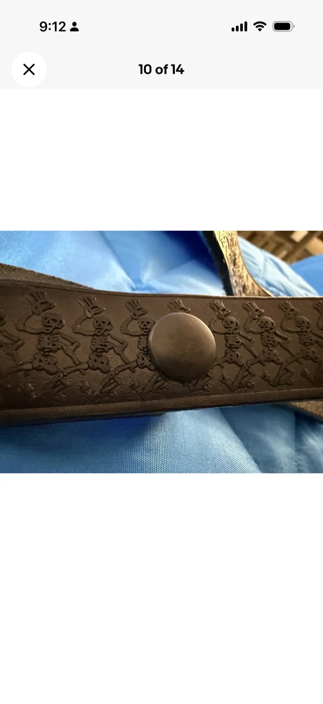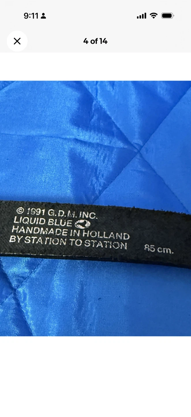 Vintage 1991 Grateful Dead Steal Your Face Leather Belt – Liquid Blue – Handmade in Holland Vintage Liquid Blue belt, handmade in Holland. Features embossed detailing and a lightning bolt buckle. It's 75 cm long.