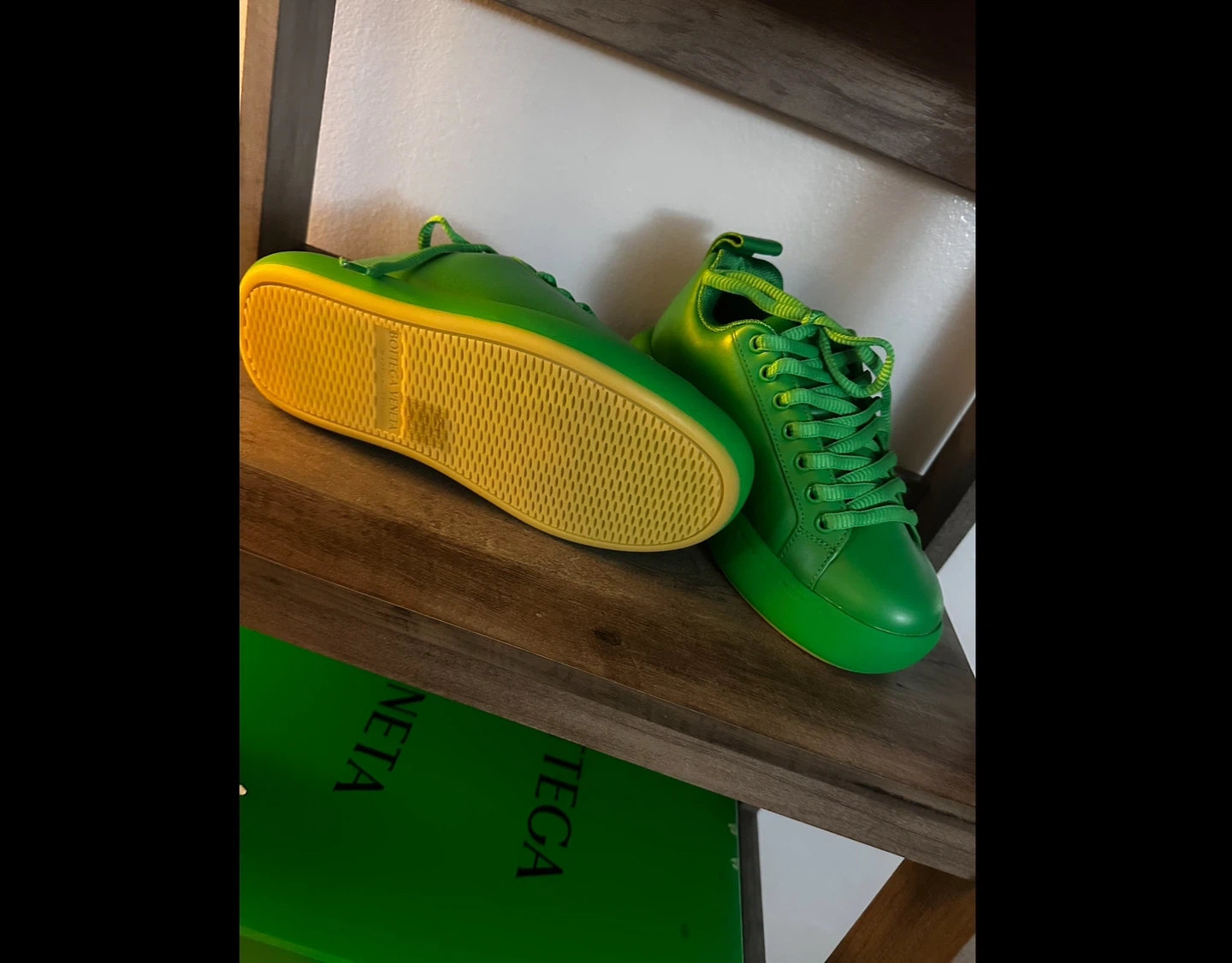 Bottega Veneta Green Leather Low-Top Sneakers