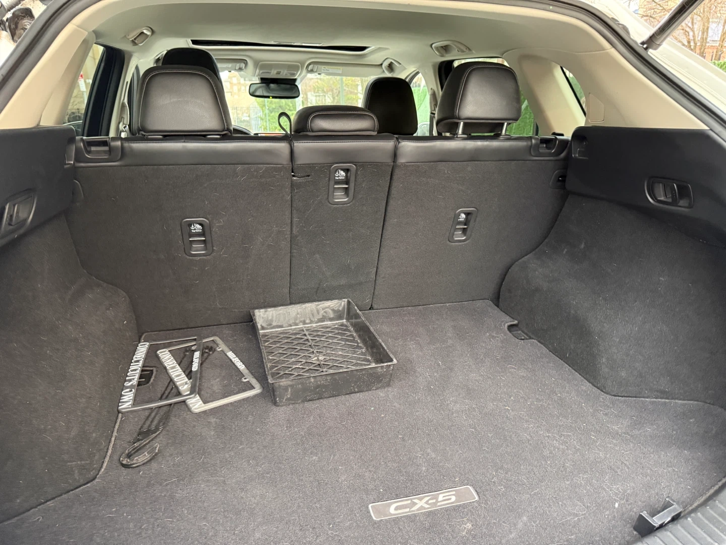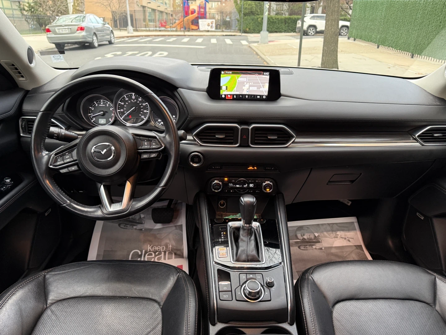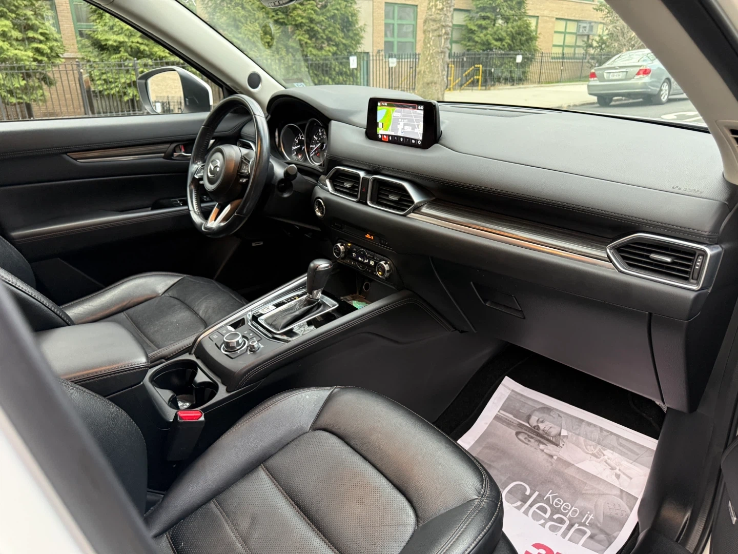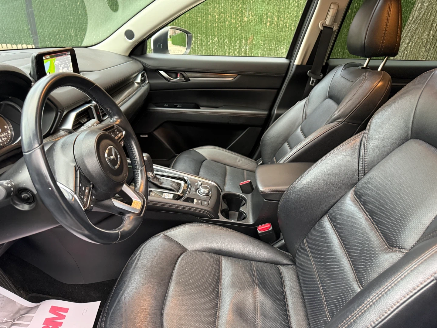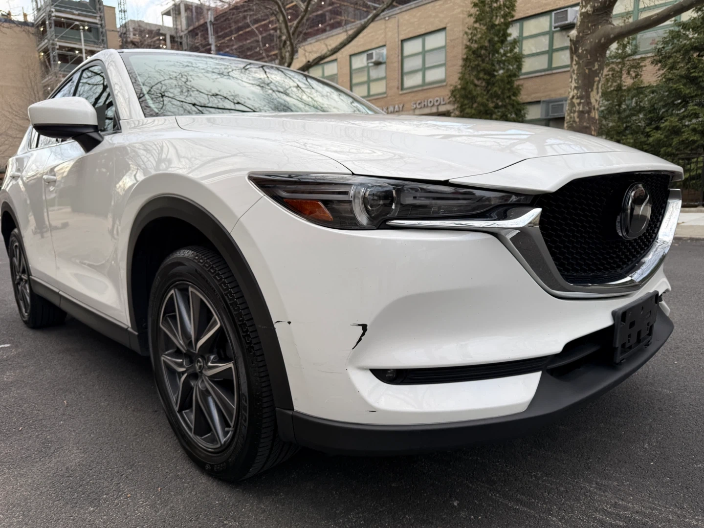 White 2019 Mazda CX-5 AWD. Black leather interior. Some minor scuffs on front bumper.