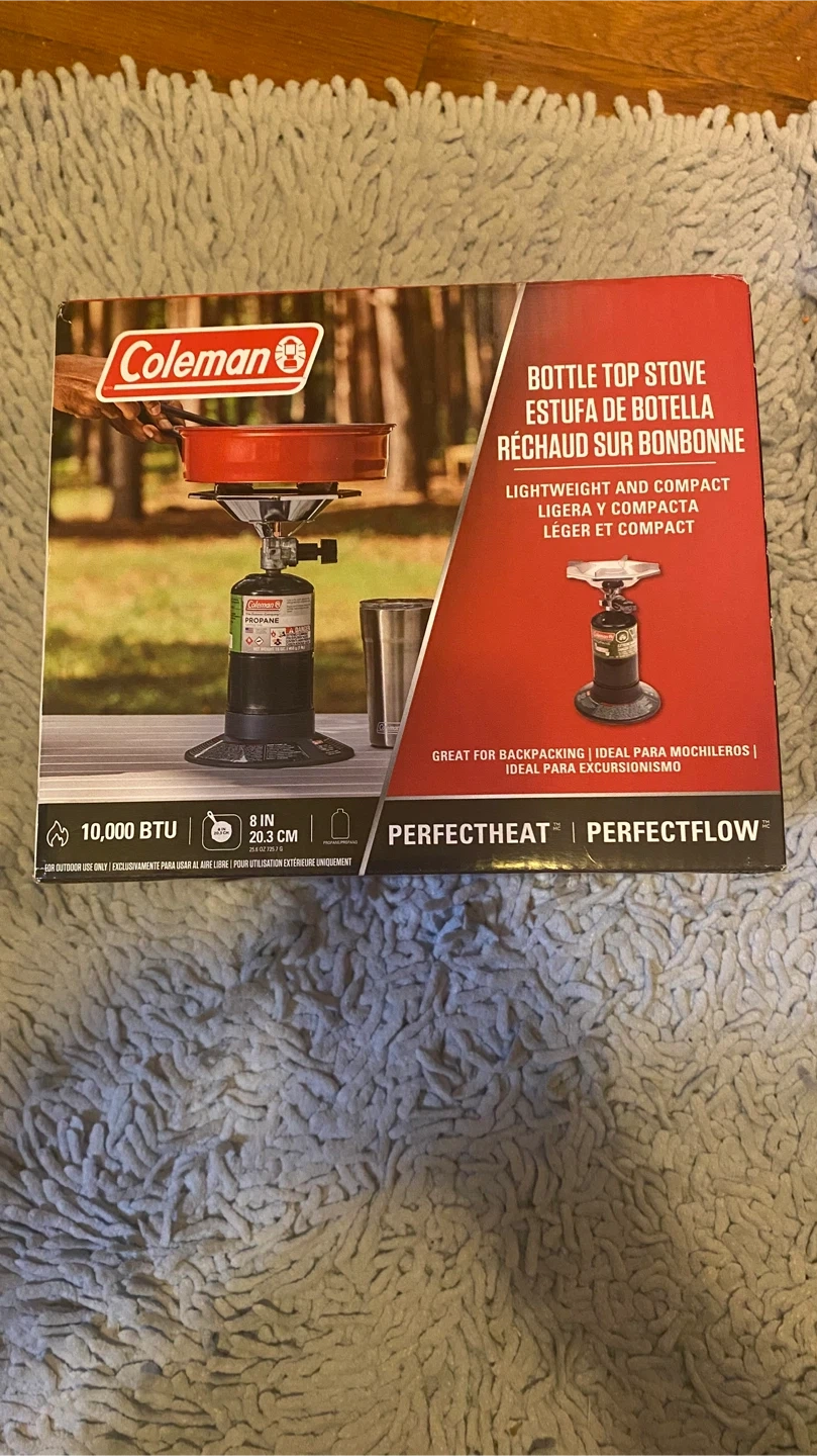 This is a Coleman bottle top stove. It's lightweight and compact, perfect for backpacking. Features adjustable burner and large base.