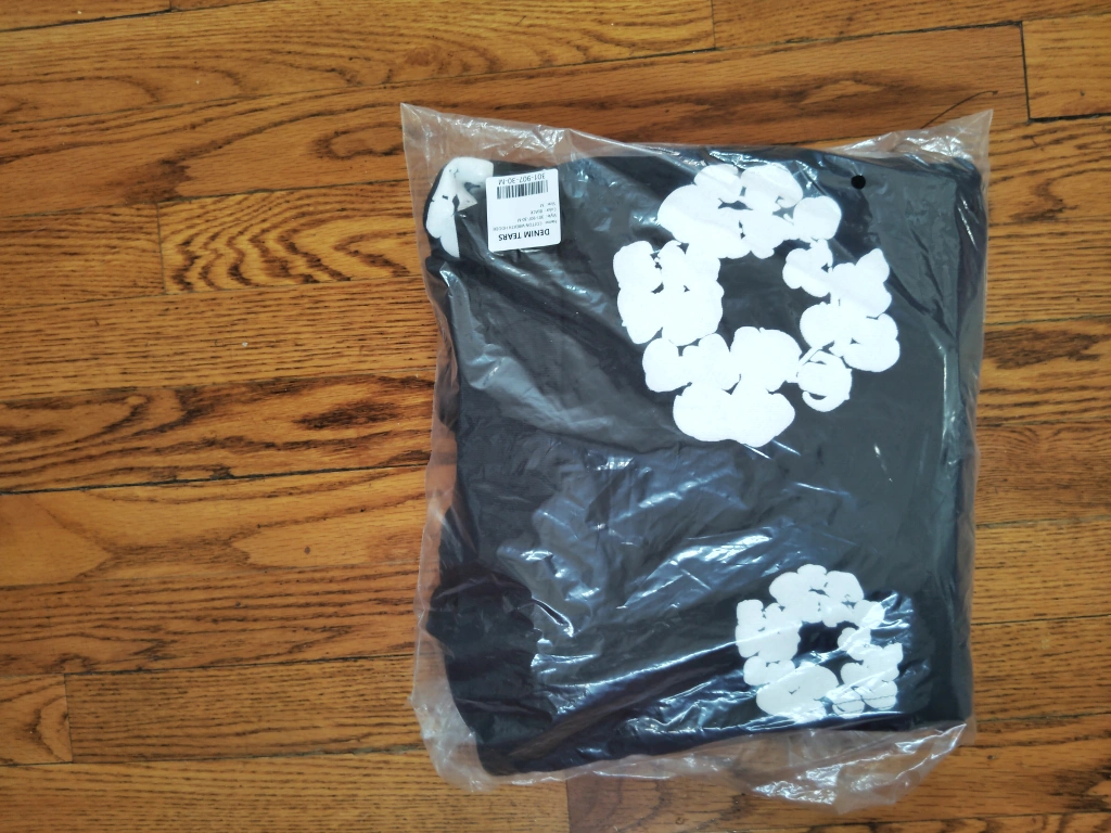 DENIM TEARS Black Hoodie with White Floral Print - Size M