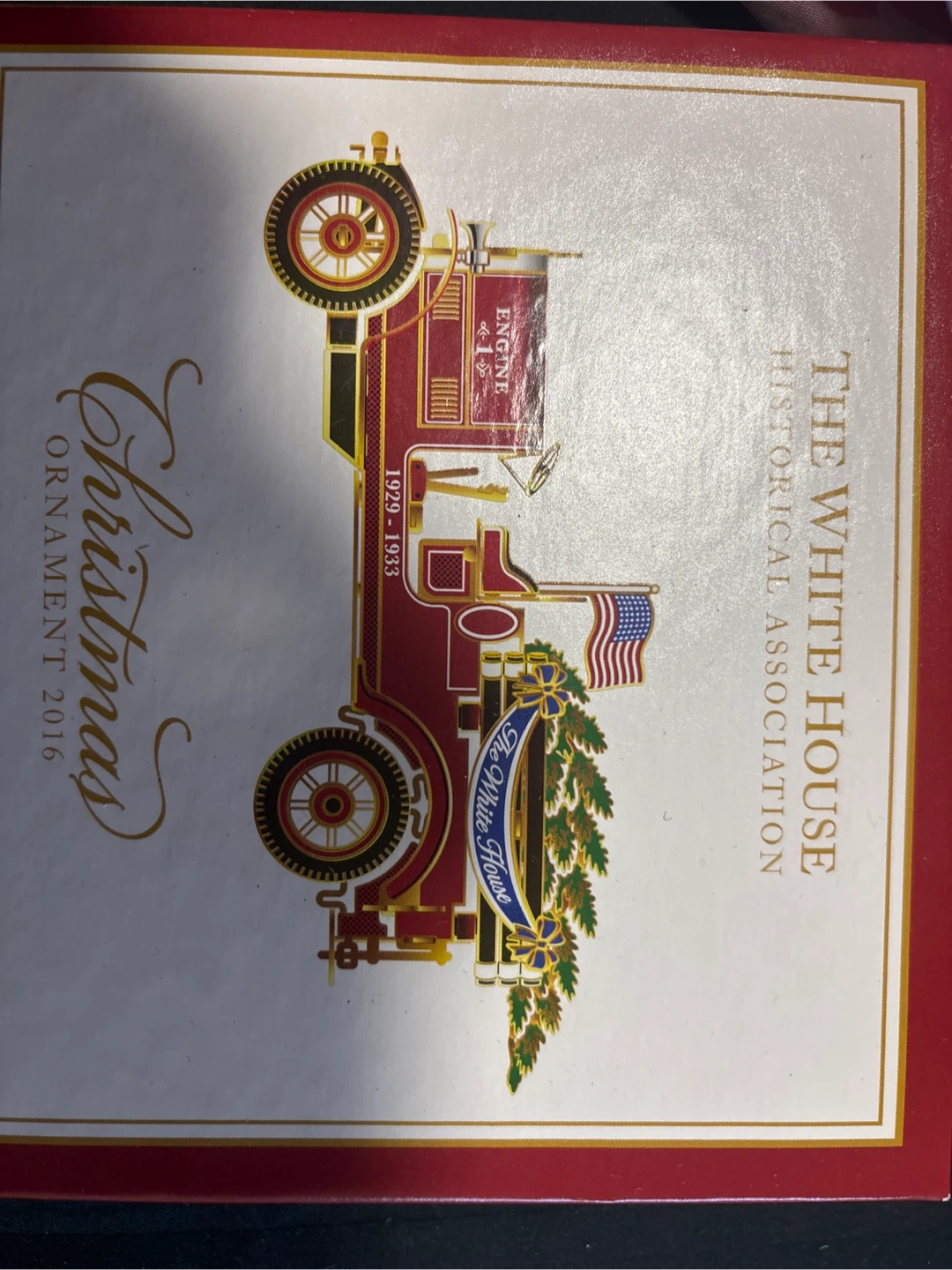 Selling a White House Historical Association 35th Annual Christmas Ornament from 2016. It honors President Herbert Hoover and features a detailed engine design from 1929-1933. Comes with the original box