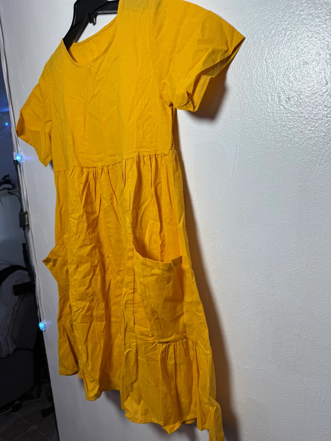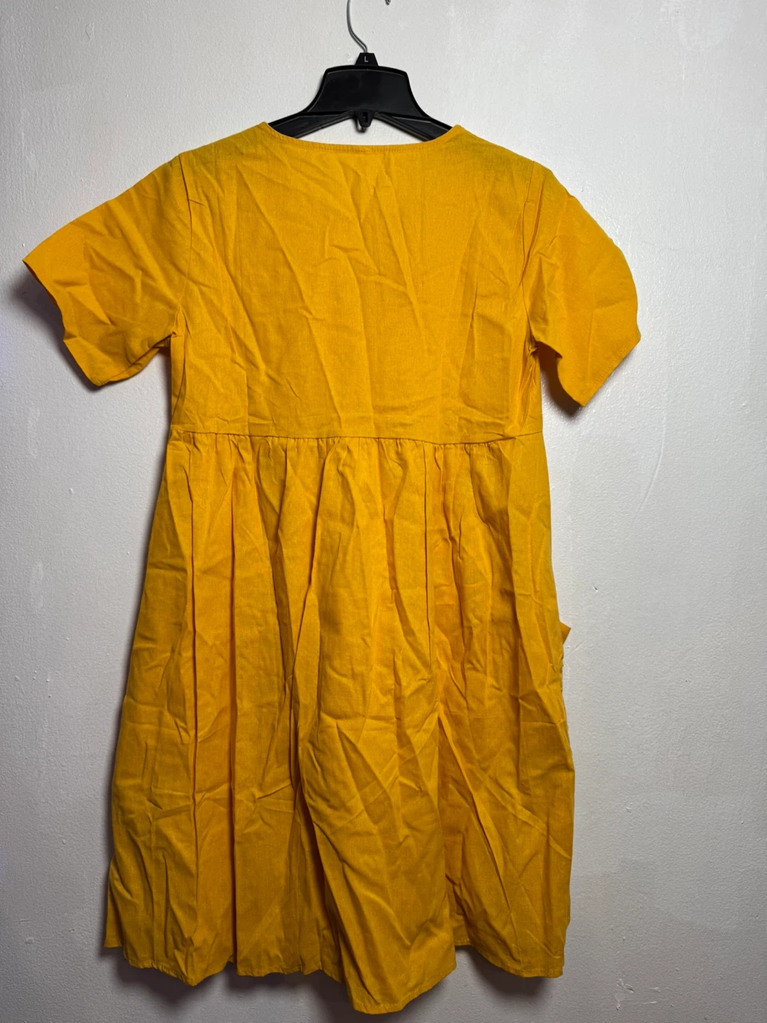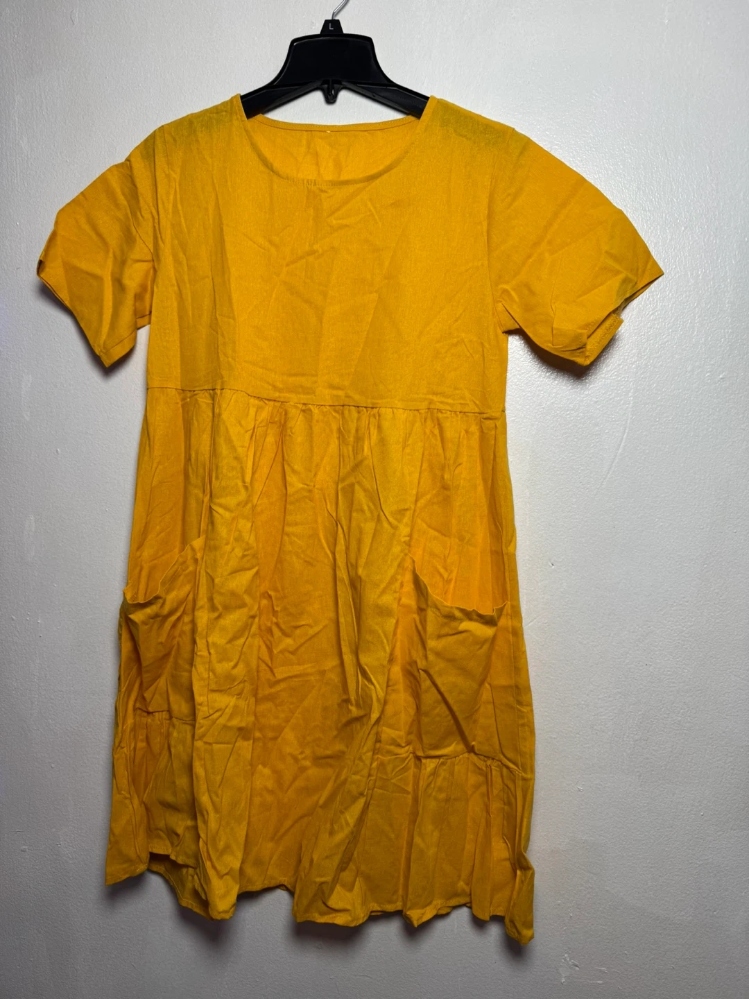 This yellow dress is made from a 35% flax and 65% cotton blend. It features short sleeves and convenient pockets. The tiered design gives it a relaxed fit.