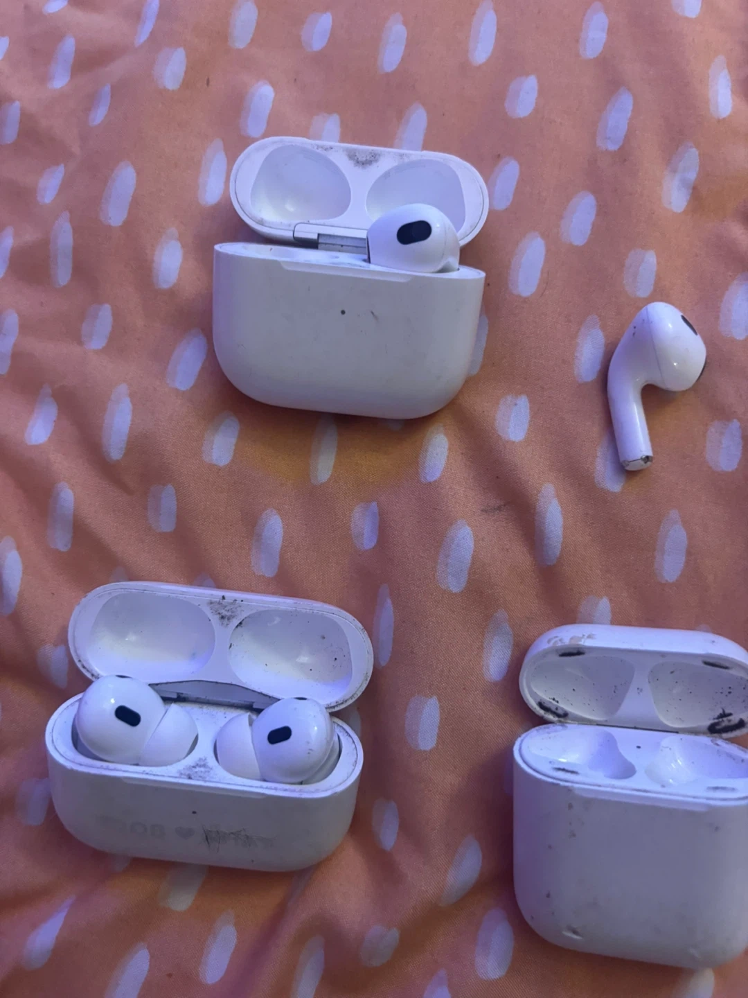 Set of Apple AirPods Pro (2nd generation) wireless earbuds and charging cases. This lot includes multiple pairs and charging cases for convenience. Experience immersive audio and seamless connectivity with these iconic earbuds.