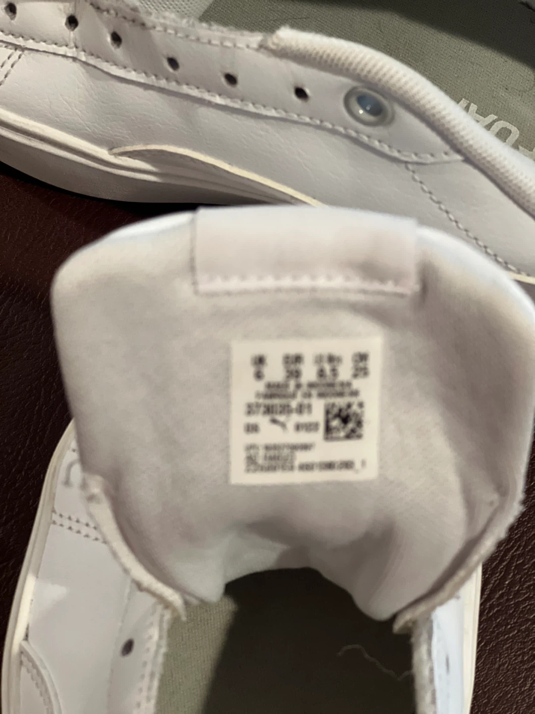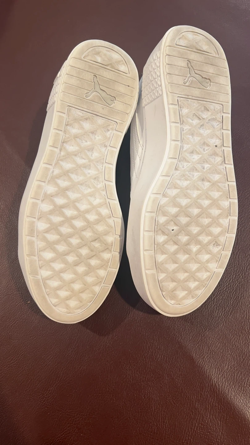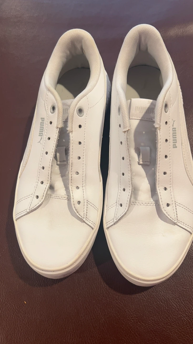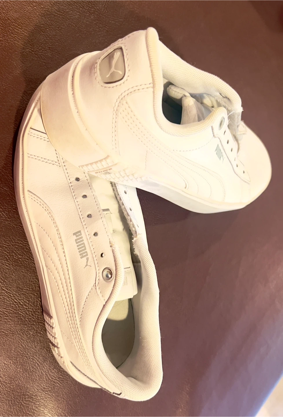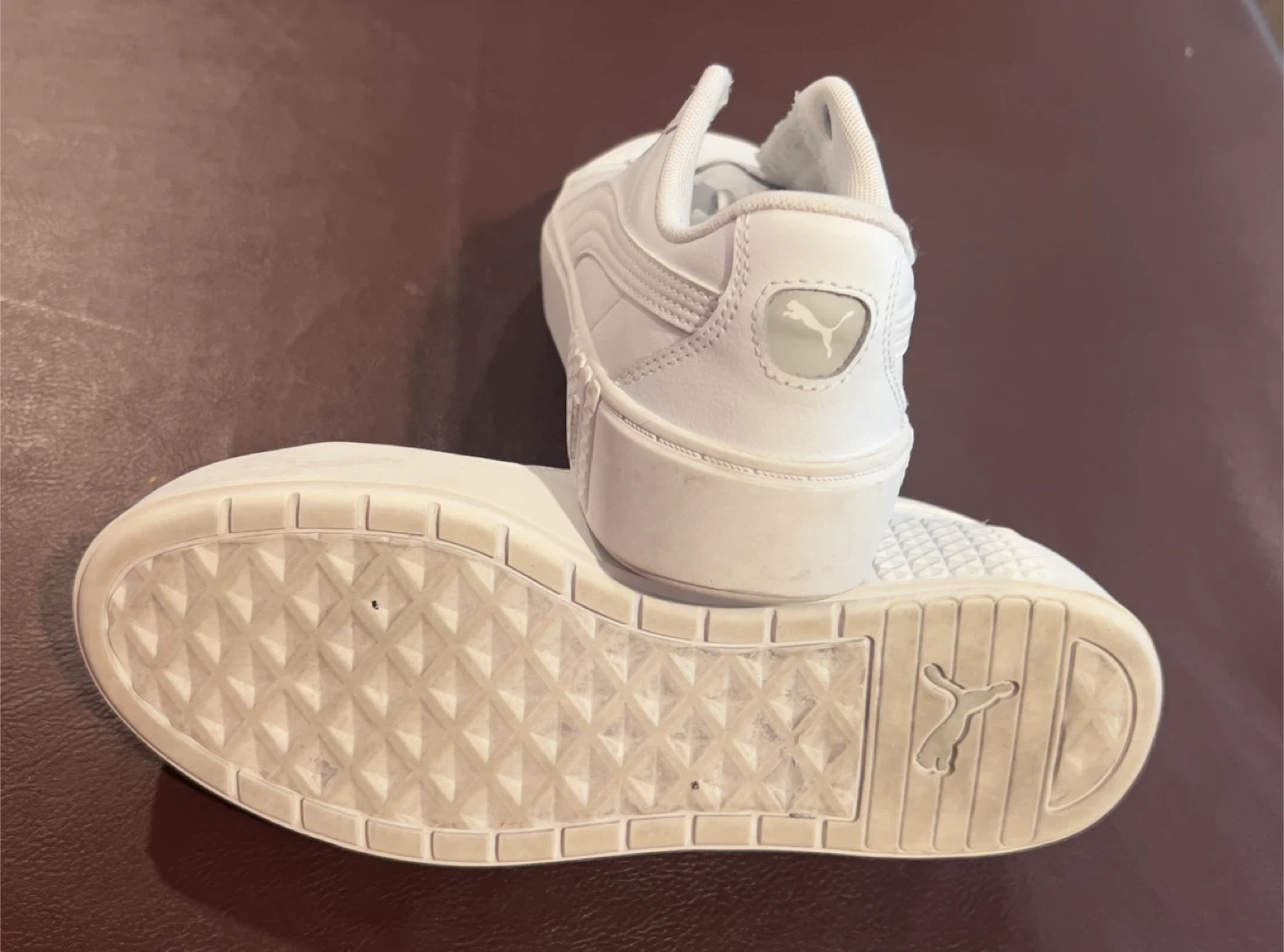 Like NEW Puma white leather sneakers. The size is US 8.5 / UK 6 / EUR 39 / 25 CM. Perfect for everyday wear!