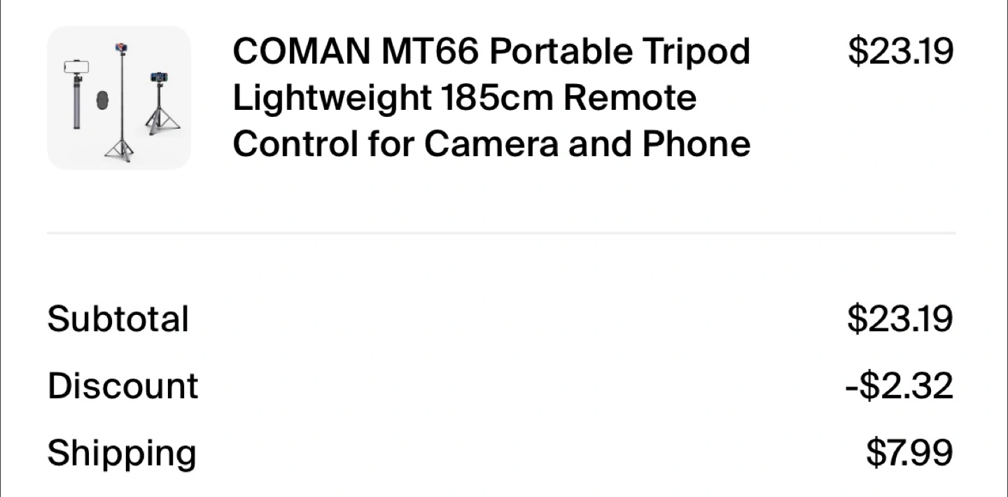 A portable tripod for cameras and phones. The tripod is lightweight and has a 185cm height, perfect for getting that perfect shot. Got it for $28, remote controller is missing