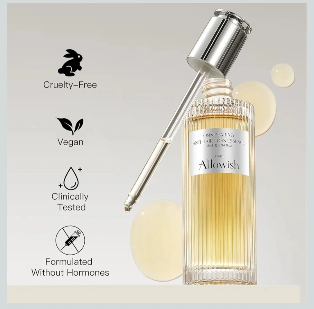 This hair serum from Allowish is vegan and cruelty-free. It's formulated without silicone oil, formaldehyde, mineral oil, or preservatives. The essence comes in a 95ml bottle.