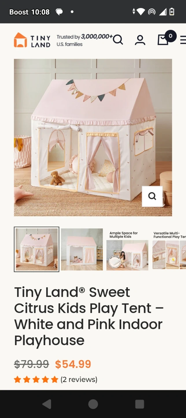 Selling a Tiny Land Sweet Citrus Kids Play Tent. It's a white and pink indoor playhouse that offers ample space for multiple kids and versatile multi-functional play. The box is included. Originally priced at $79.99, it's now available for a great price! Imagine the look on a child's face Christmas morning
