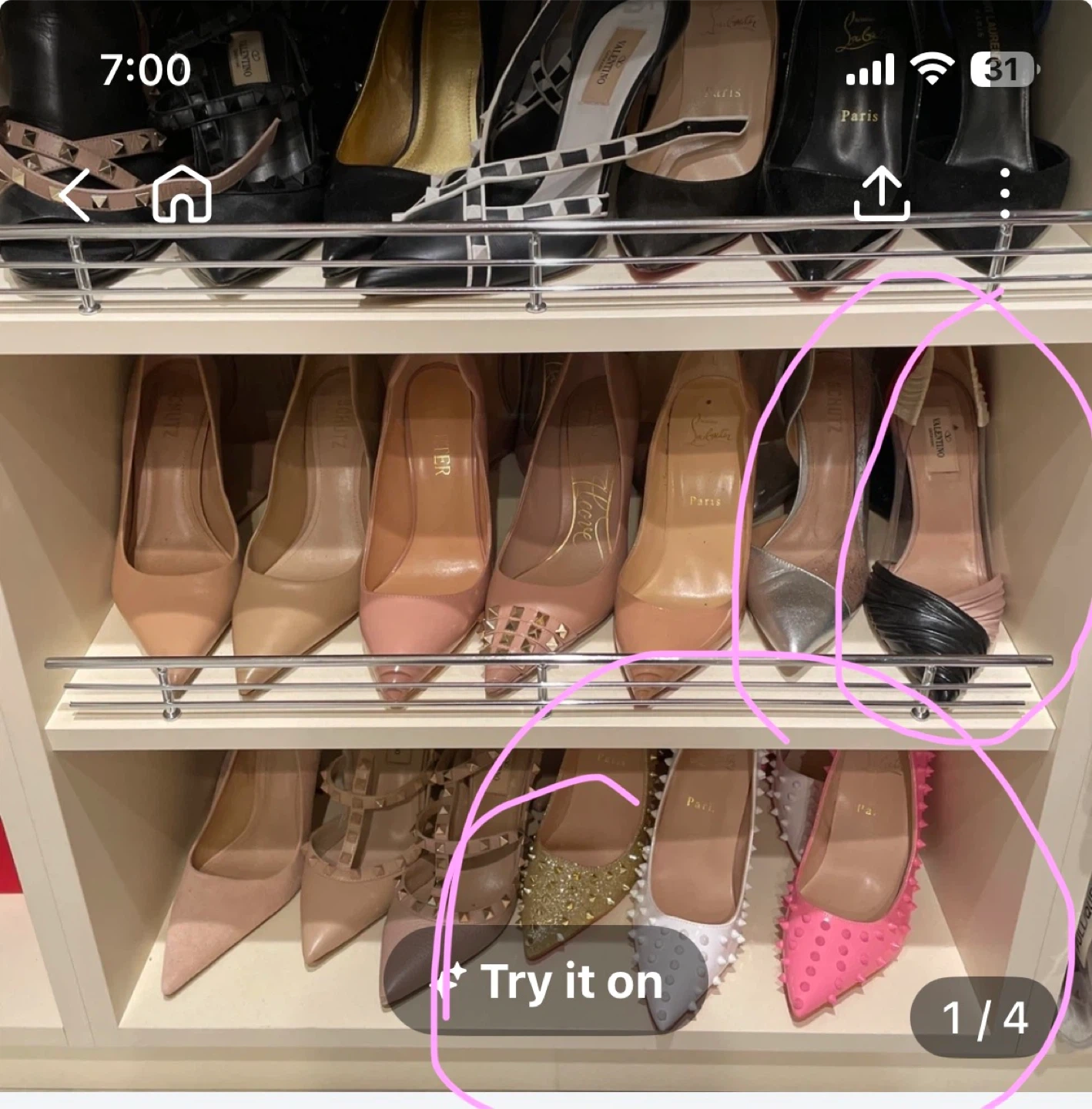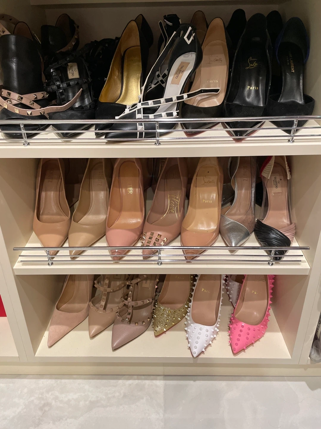 A collection of stylish women's high heels from various designer brands. Includes pumps, stilettos, and studded designs. A great selection for any fashion-forward individual!