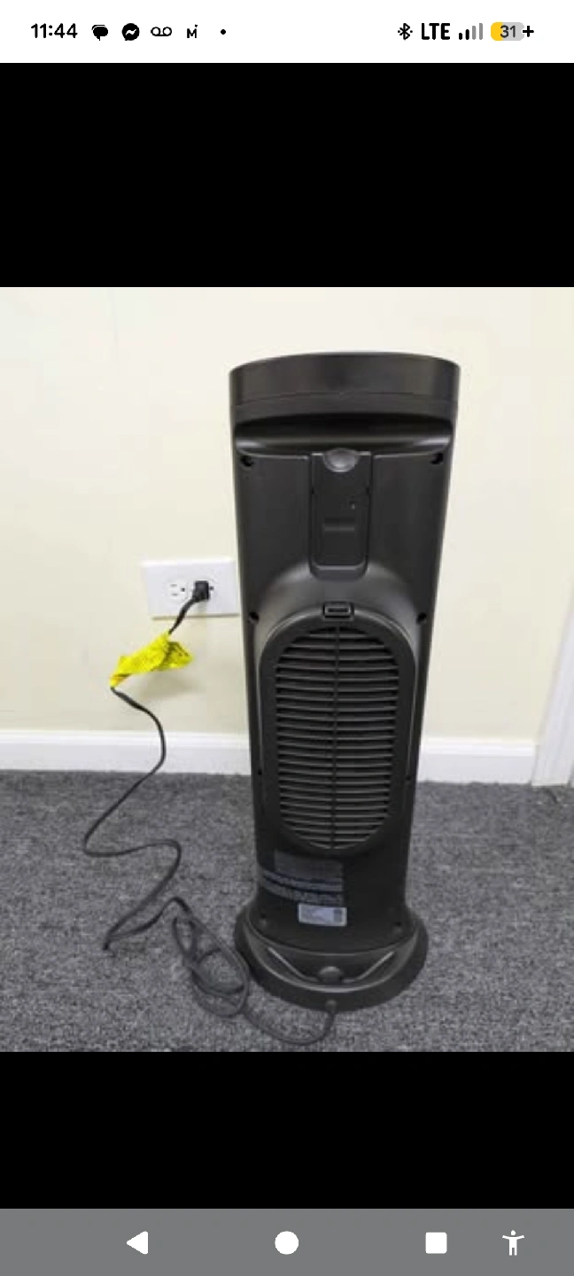 I'm selling a Honeywell black tower heater. It's perfect for keeping your space warm and cozy. This heater is in great condition and ready to use!