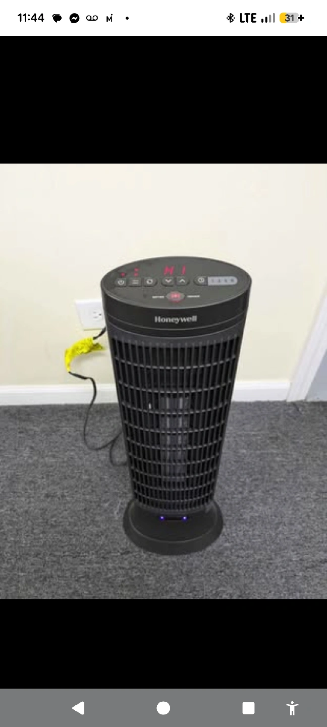 I'm selling a Honeywell black tower heater. It's perfect for keeping your space warm and cozy. This heater is in great condition and ready to use!
