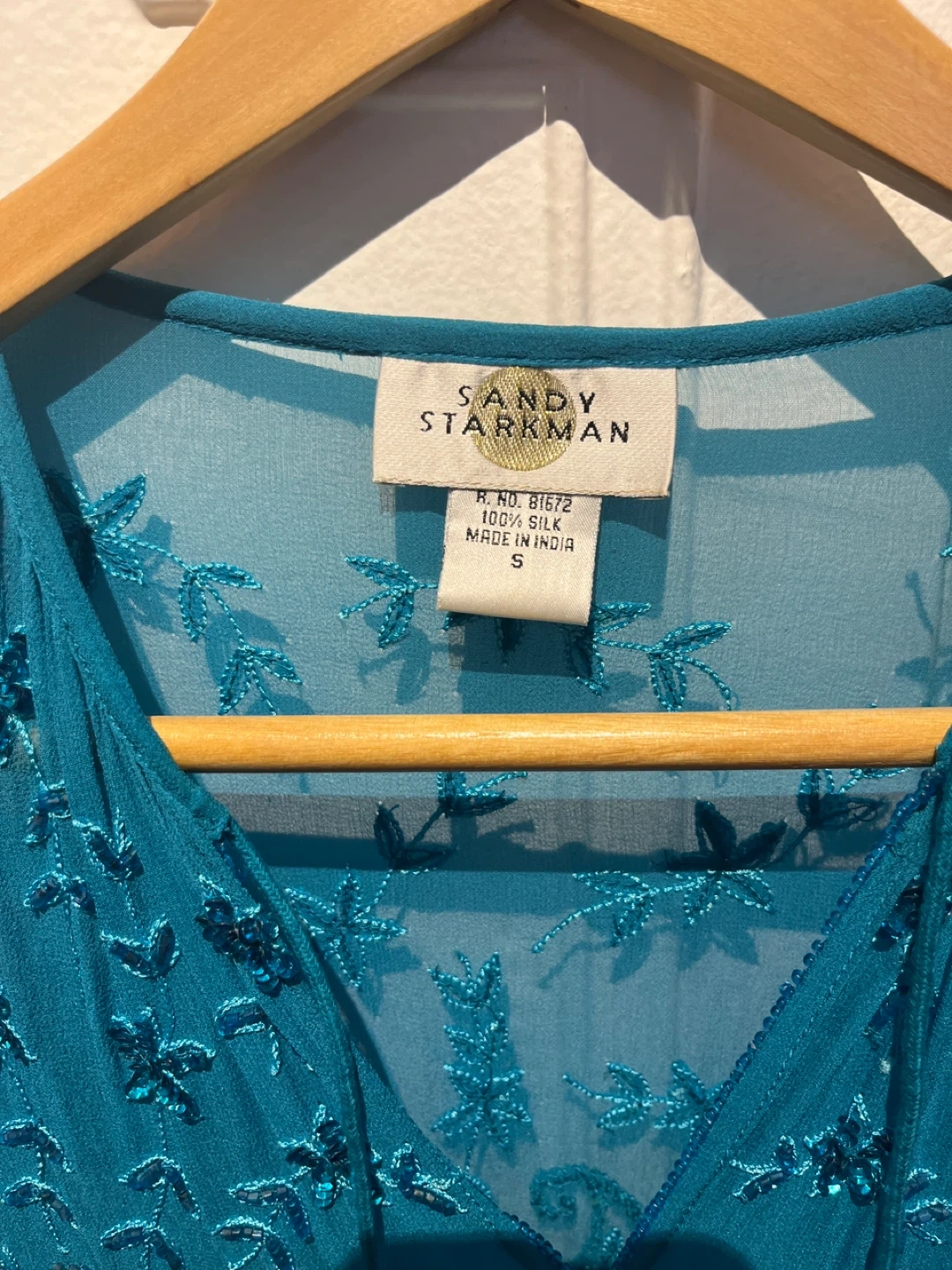 Vintage Sandy Starkman Beaded Silk Blouse - Teal - Size S