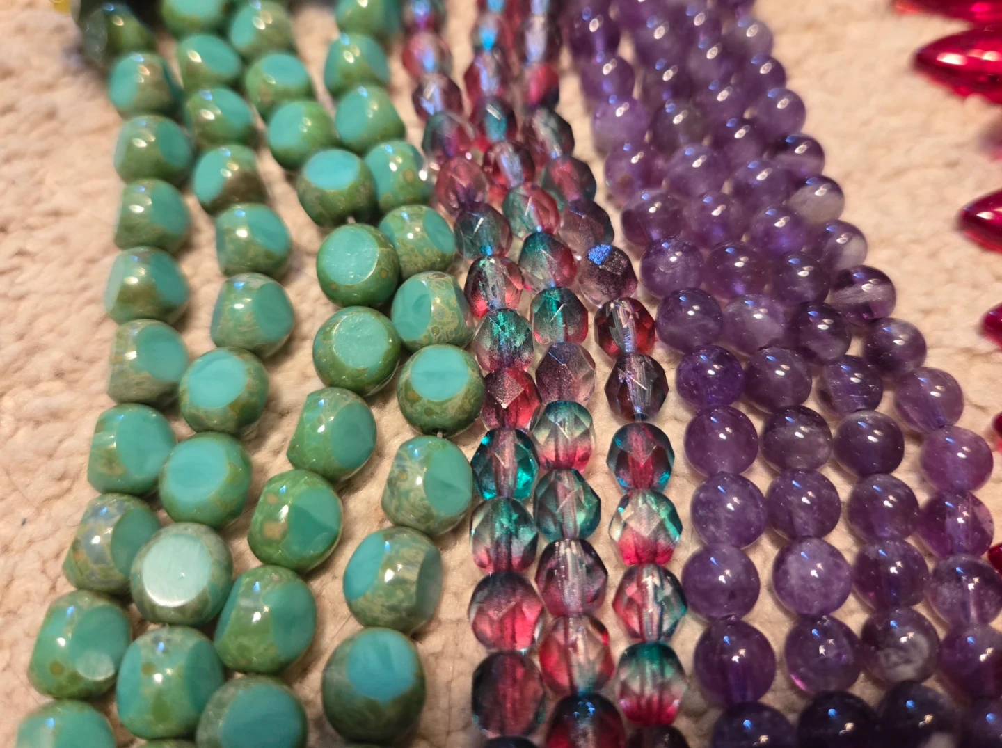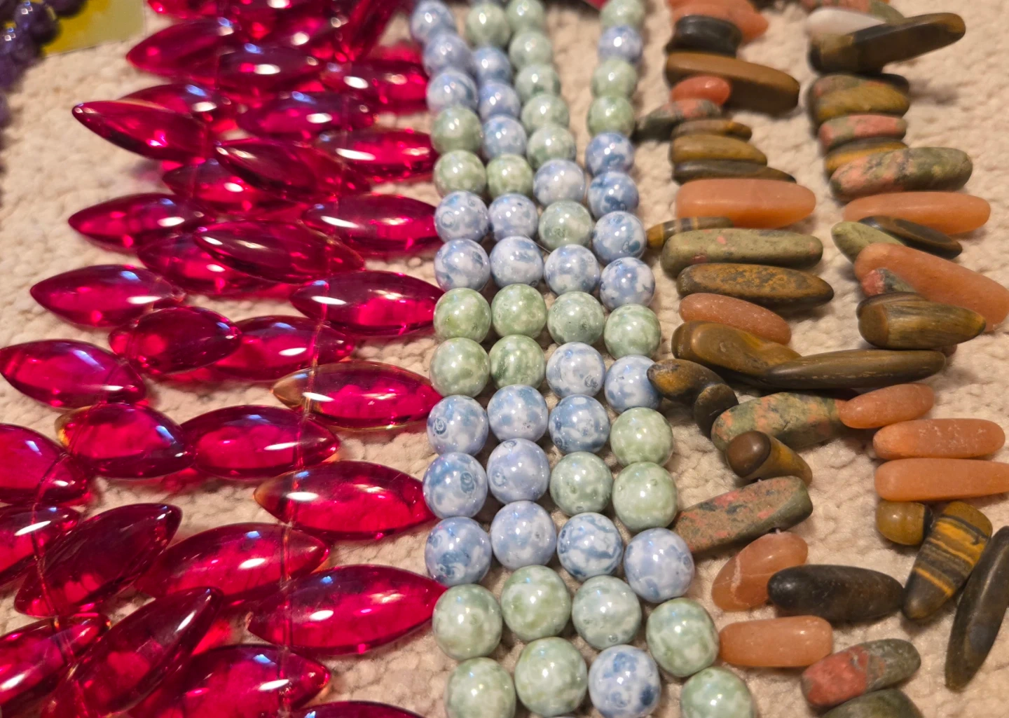 Assorted semi-precious stone and glass beads. Various colors and styles. Great for jewelry making or crafting.
