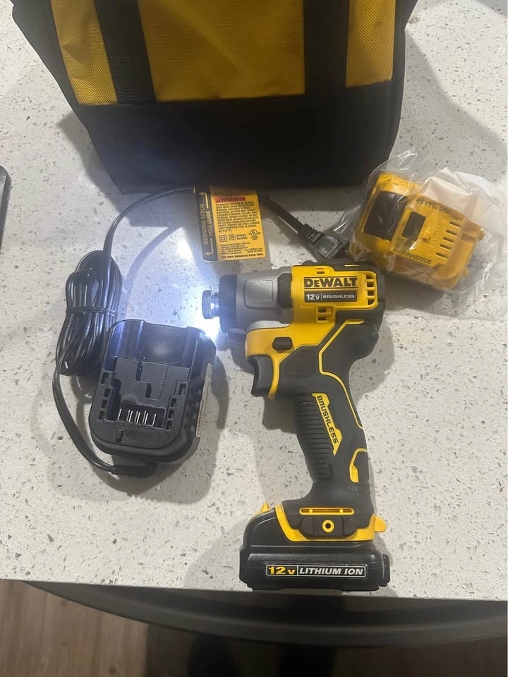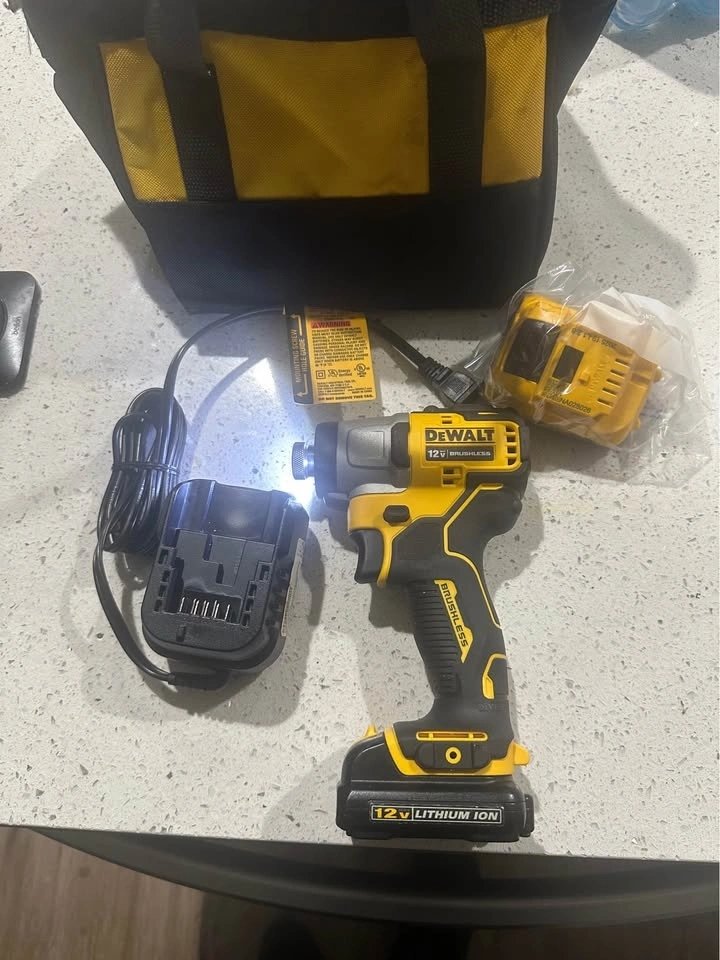 Brand new DEWALT 12V MAX Brushless Impact Driver. Compact and lightweight design, perfect for drilling and driving screws in tight spaces. Includes charger & 2 batteries. Feel free to message if you have any questions!