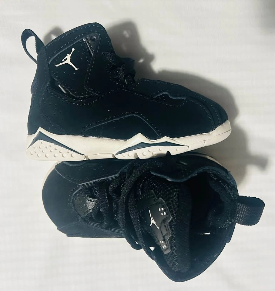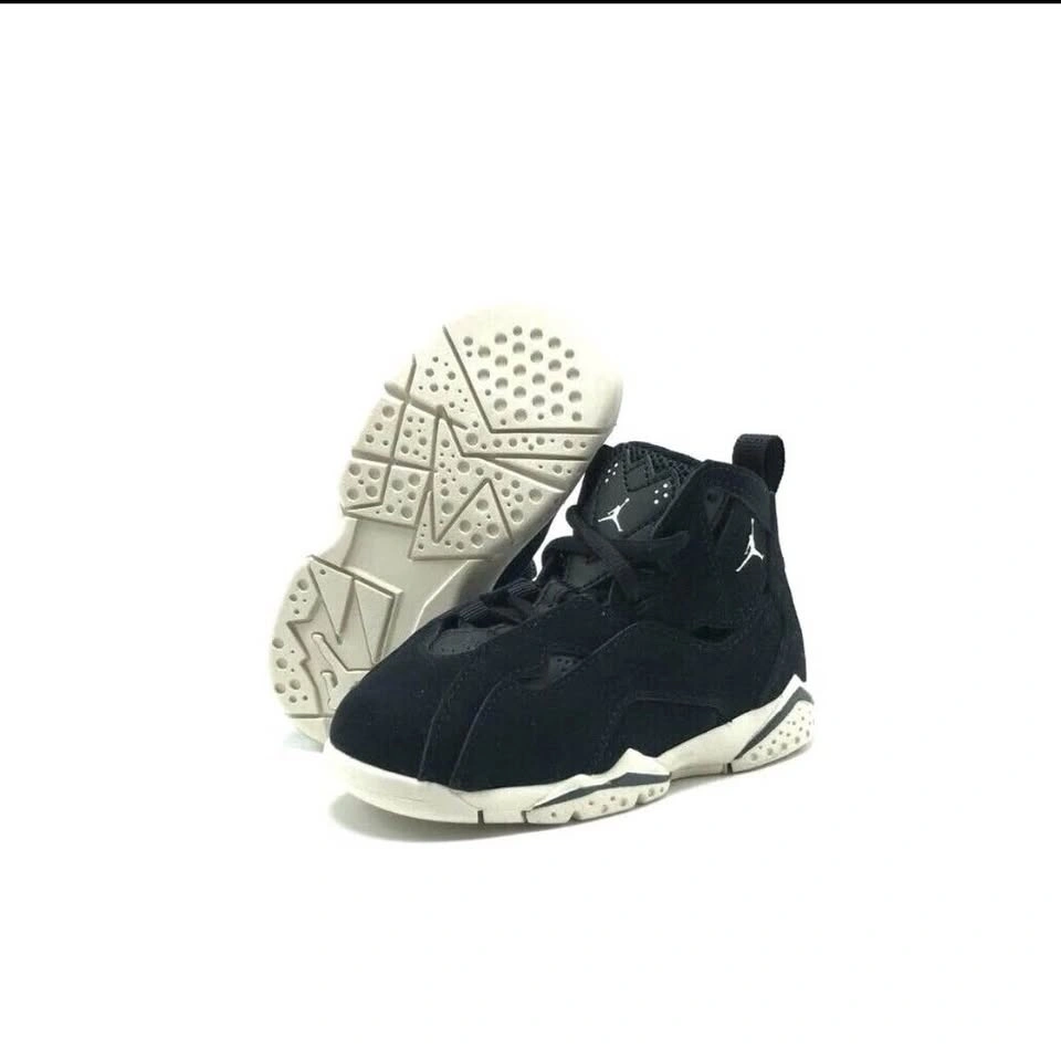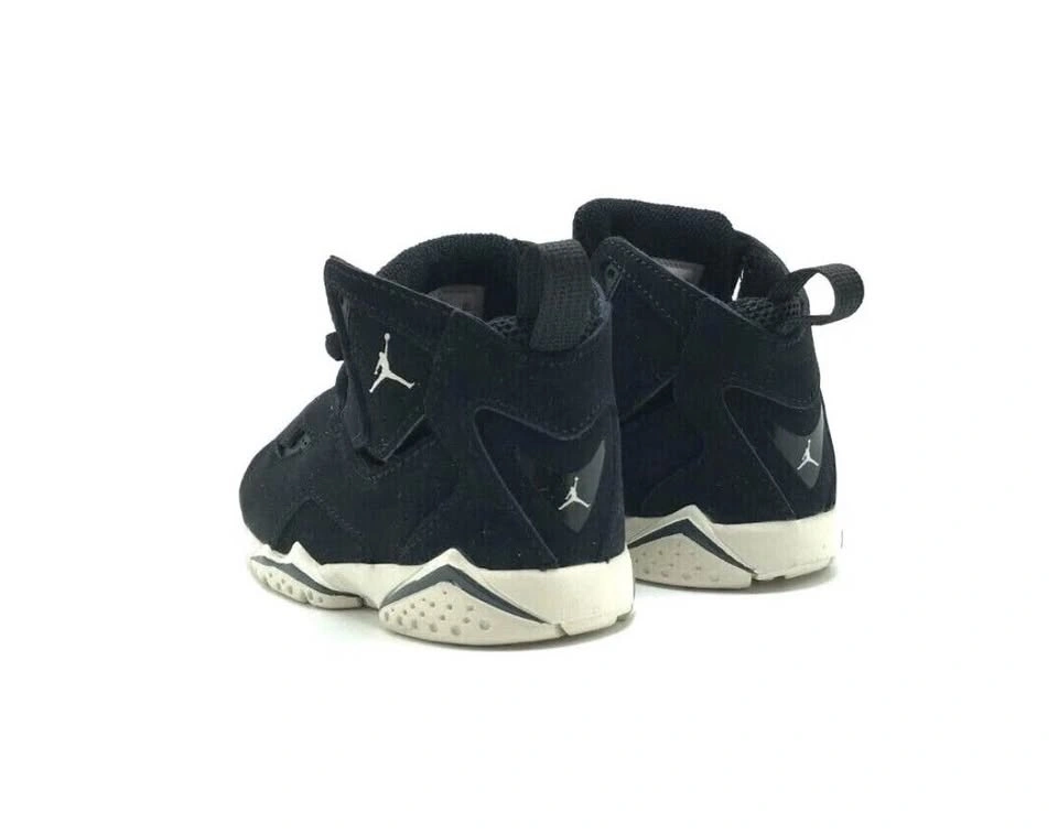 The Jordan True Flight "Black/Phantom/Anthracite" Toddler Boys' Shoe takes cues from the original Air Jordan 7, showcasing a retro '90s-inspired aesthetic with a supportive high-top collar. Built with a cushioned midsole and a durable rubber outsole, it provides both comfort and reliable traction, making it ideal for active toddlers on the move.