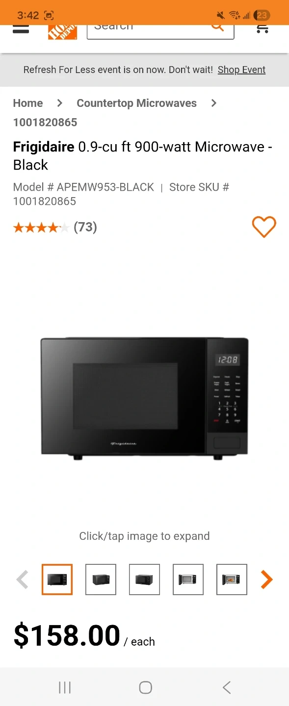 50% OFF SALE! FRIDGIDAIRE 0.9 cu. ft. Microwave Oven, $75