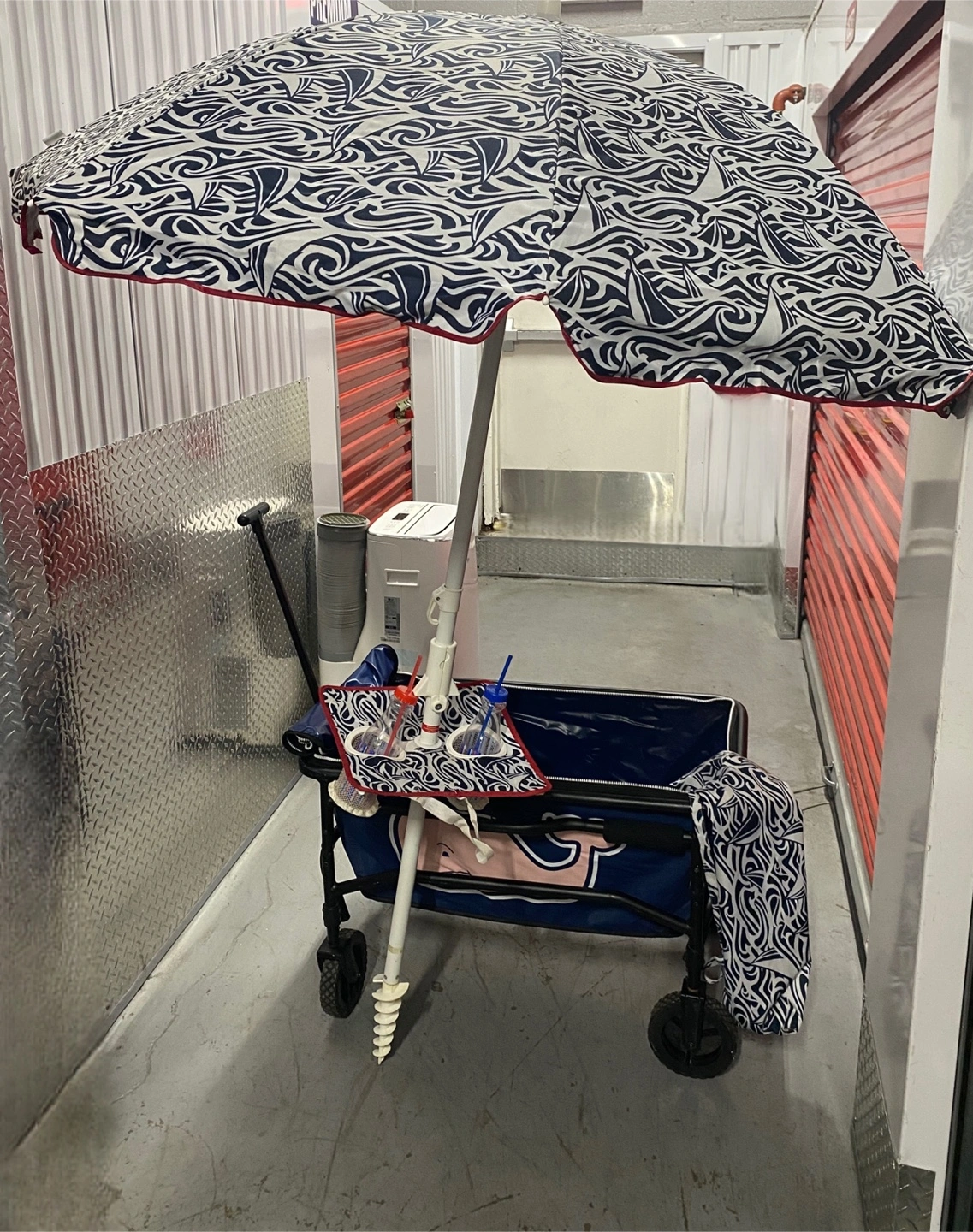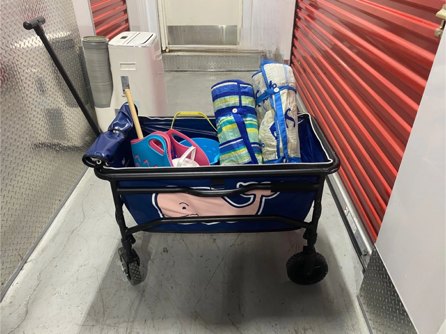 Fits beach chairs ,cooler , toys, duffle bags , food etc. 😁EVERYTHING FITS INSIDE OF THIS WAGON !! FREEs YOUR HANDS UP WHEN YOU HAVE KIDS !!