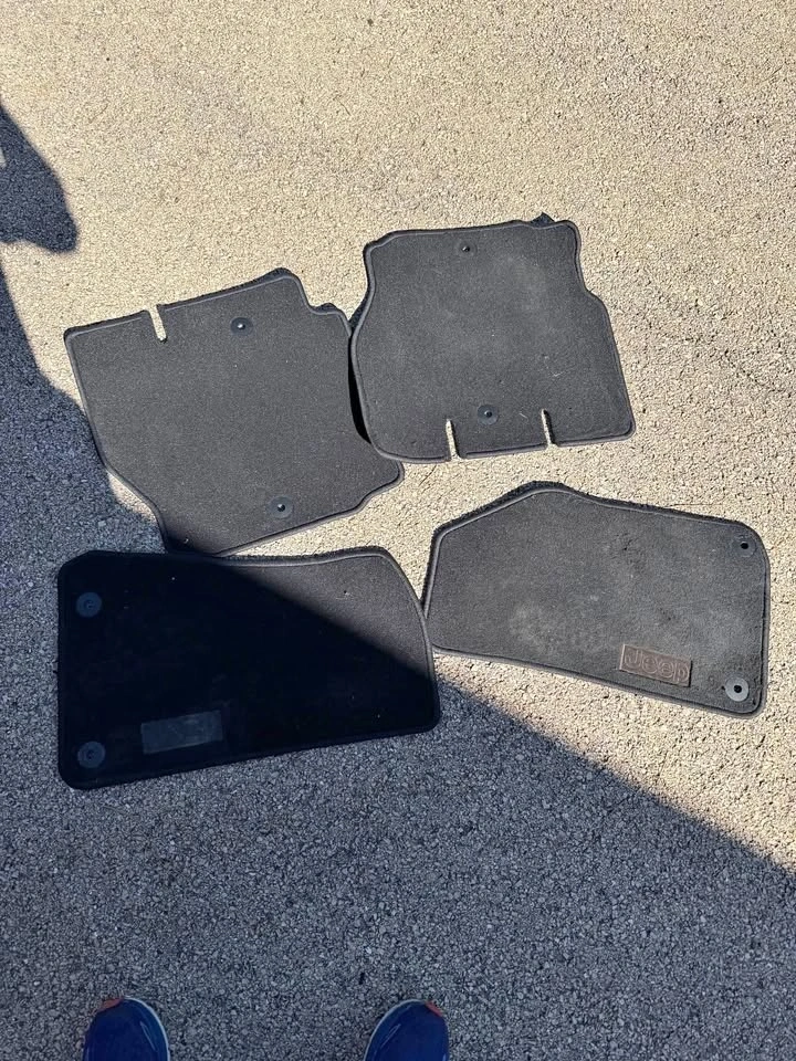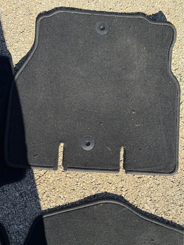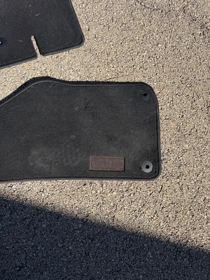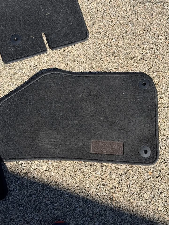 Set of 4 genuine OEM Jeep carpet floor mats, black color. Factory original mats with Jeep logo on one piece. Clean and in good used condition with minor signs of wear. Fitment likely for Jeep Cherokee / Compass / Patriot / Renegade (please verify exact fit before purchase).