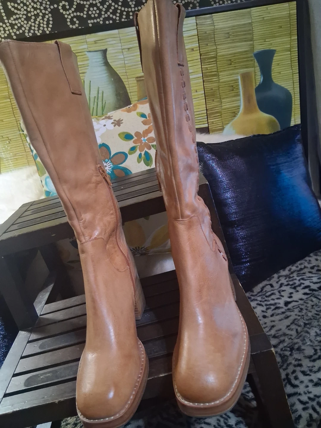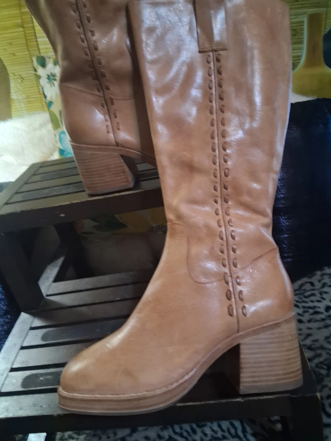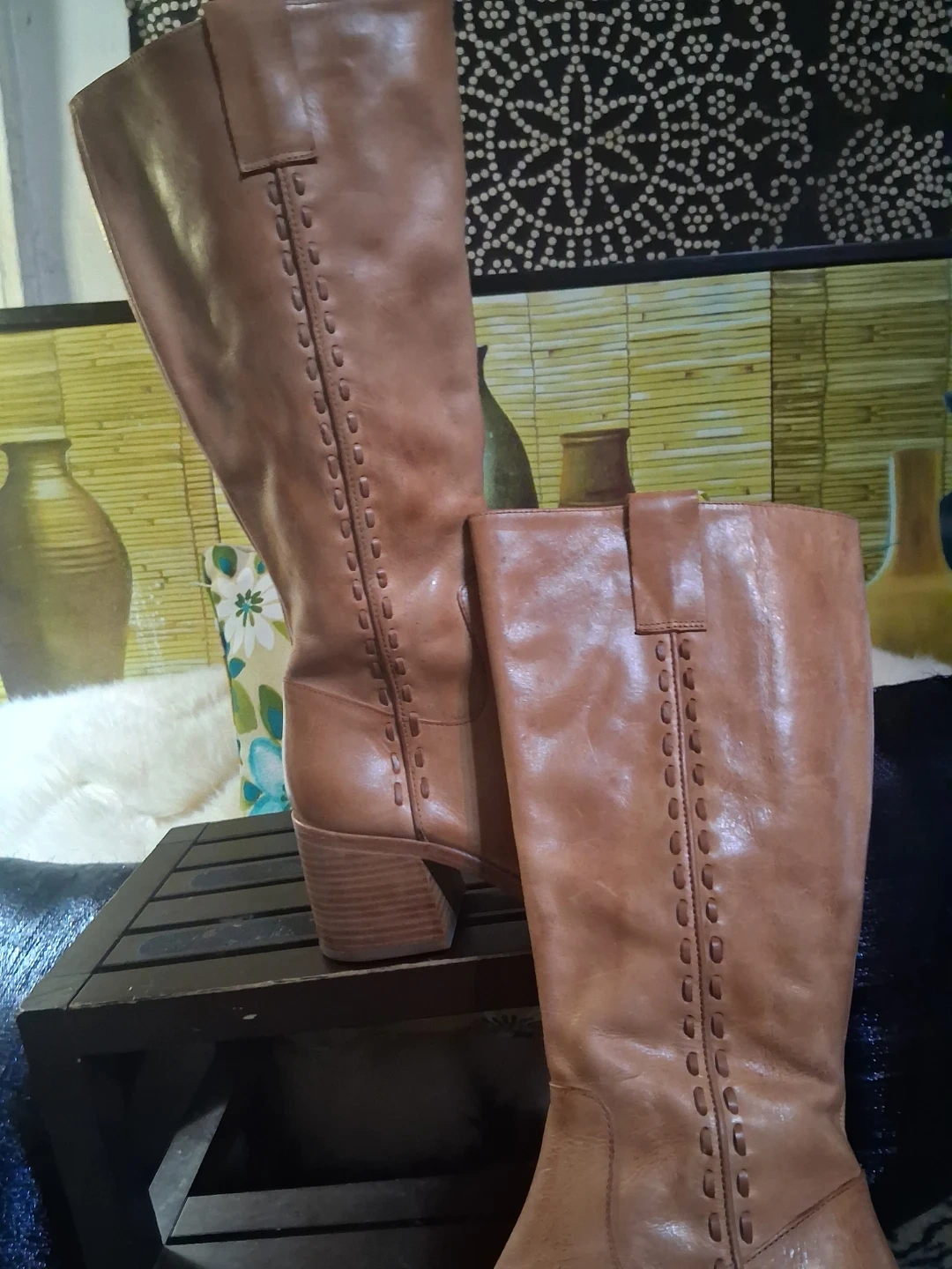 Chocolat Blu Women's Tan Leather Knee-High Boots Size 7