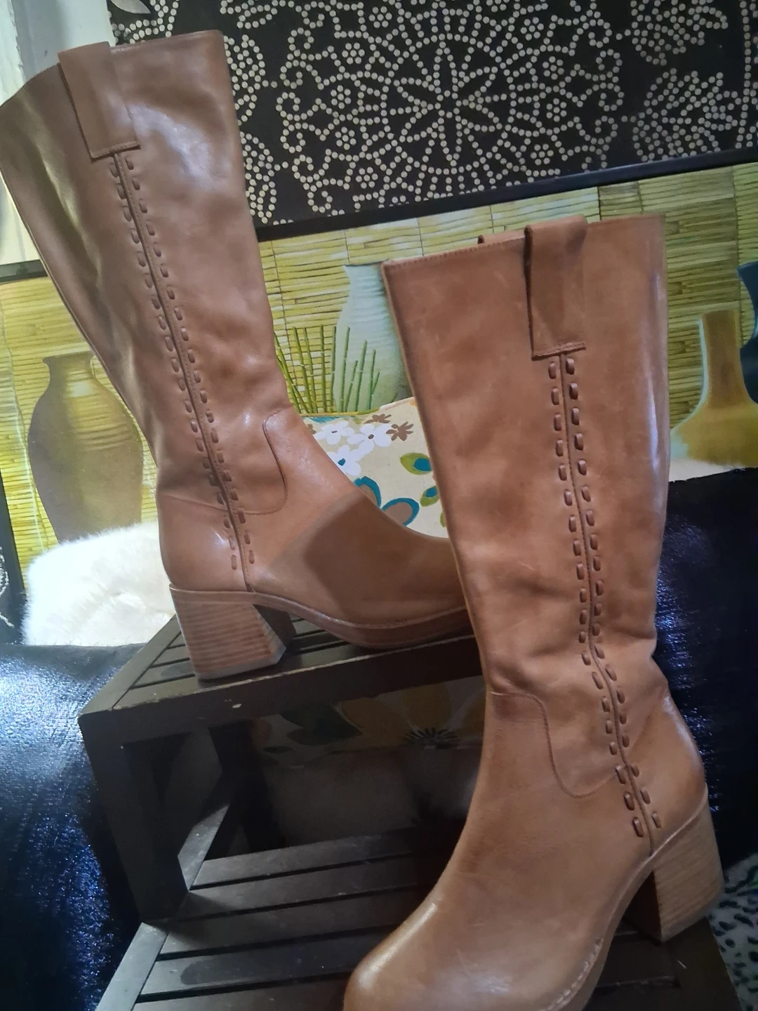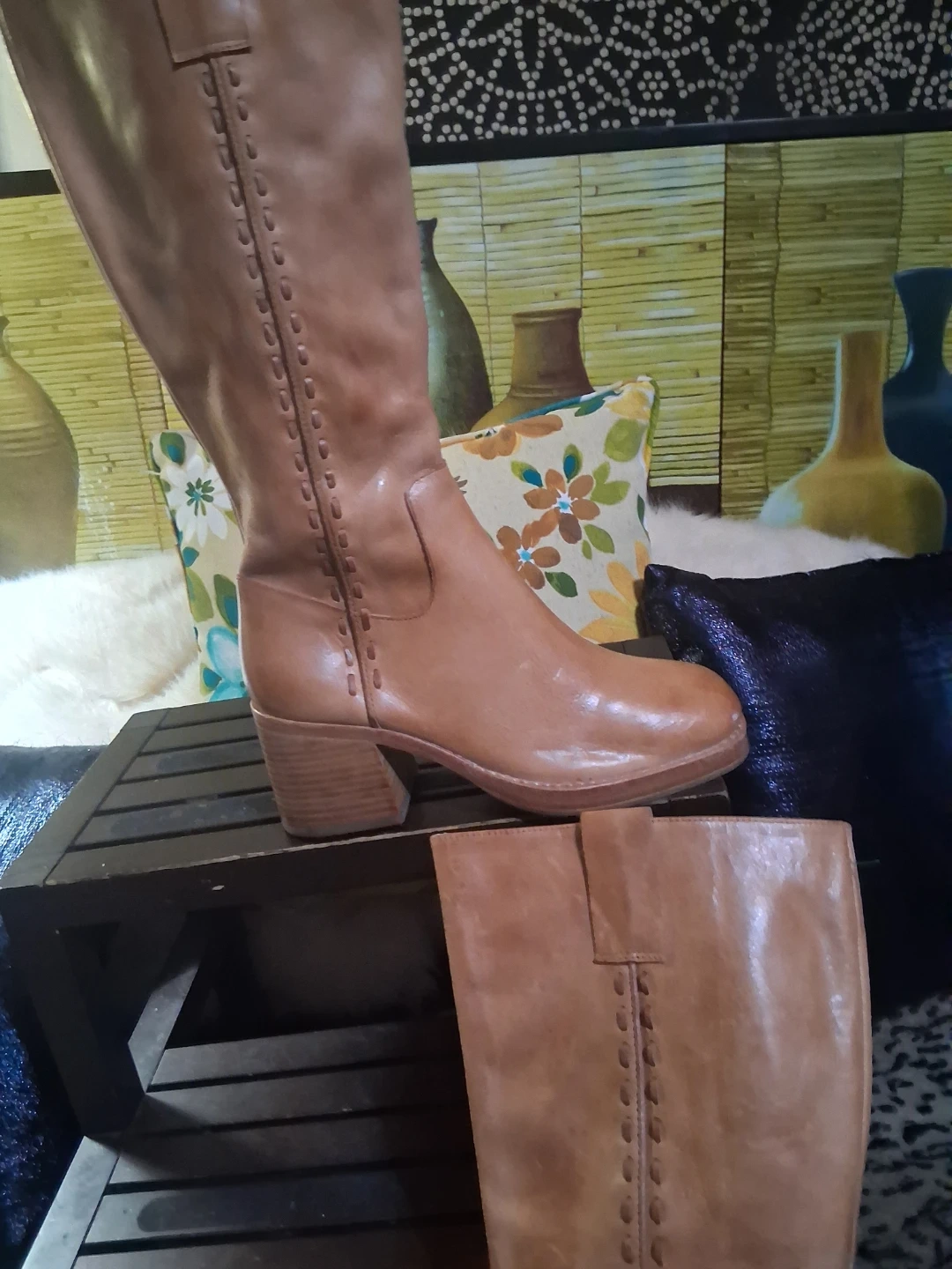 Chocolat Blu Women's Tan Leather Knee-High Boots Size 7