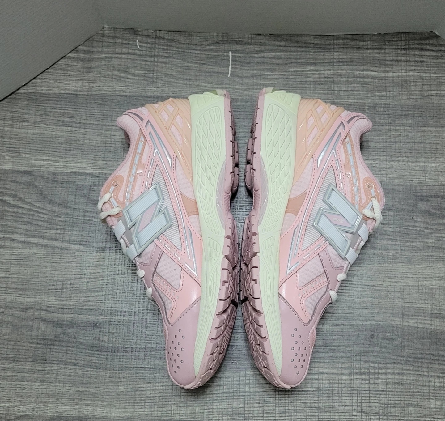 New Balance 1906NLN running shoes in a soft pink color. This is a women's size US W 5.5 (US M 4 / UK 3.5 / EU 36 / CM 22). Manufactured in September 2023. They feature a synthetic and mesh upper.