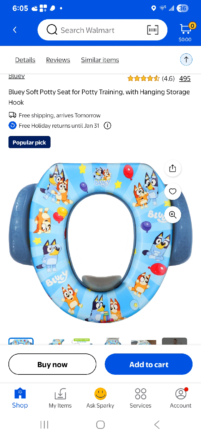 Selling a Bluey soft potty seat for potty training! It comes with a hanging storage hook, making it easy to store when not in use. It's a popular pick for parents and features a fun Bluey design!