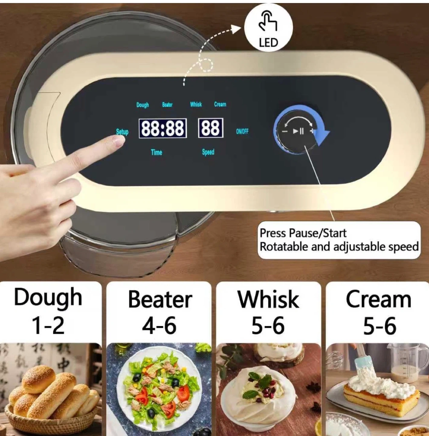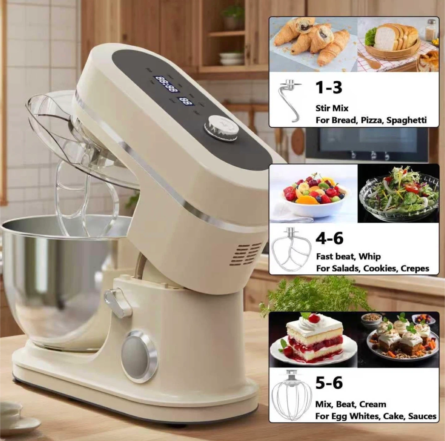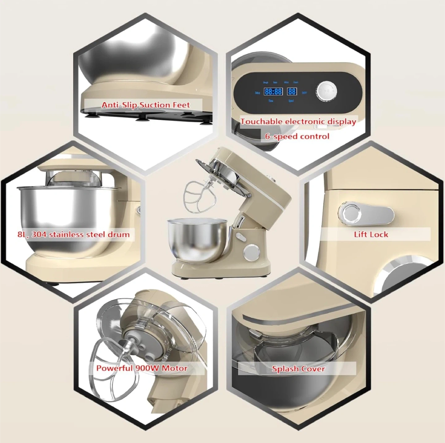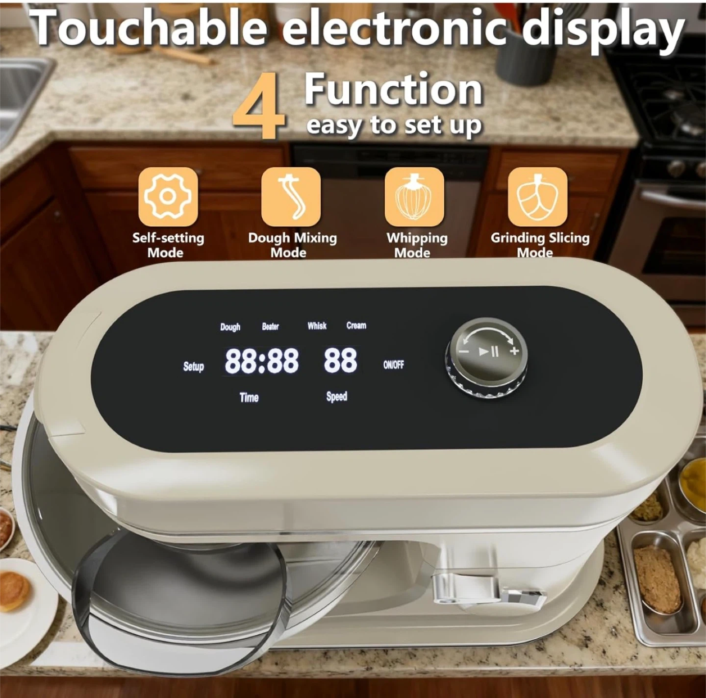 172900W Stand Mixer 8 QT kitchen Dough mixers LED Touch Screen Adjustable Speed Electric Household Mixers With Bowl,Dough Hook,Whisk And Beater For Baking, Cake,Pizza And Most Home Cooks