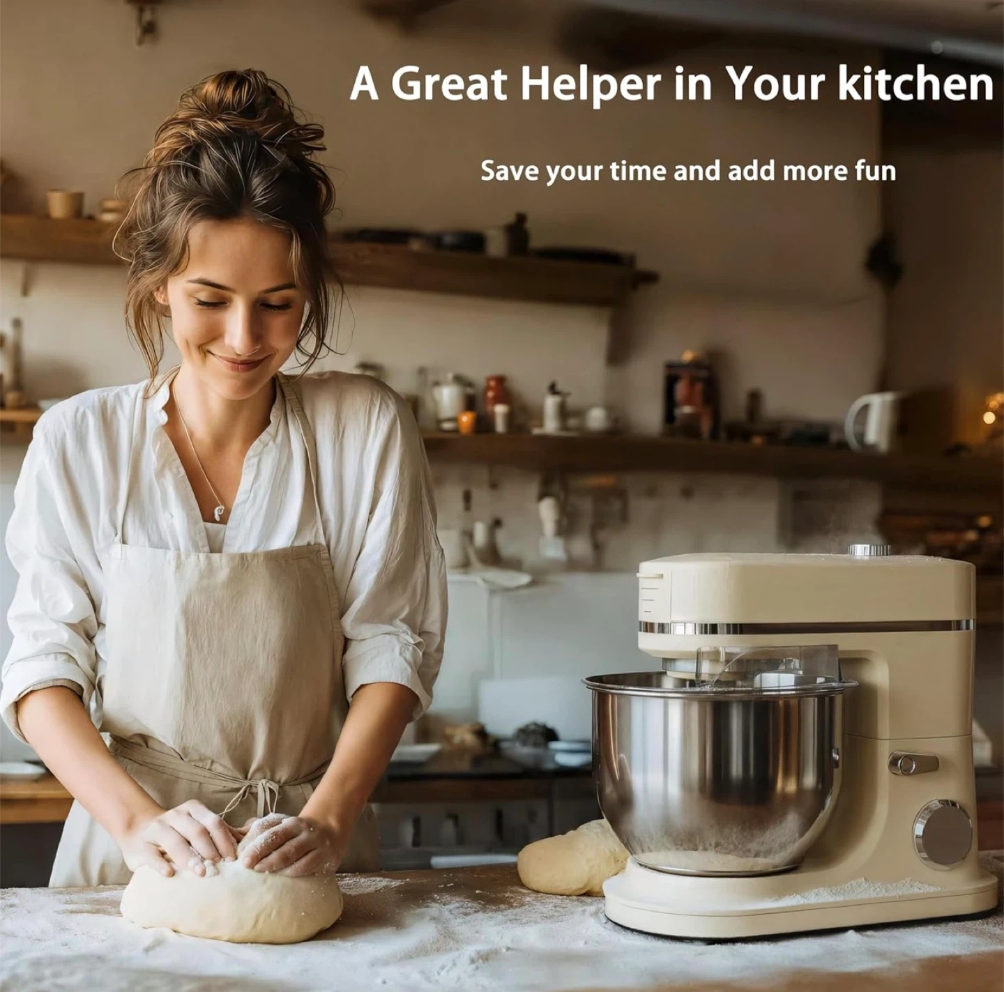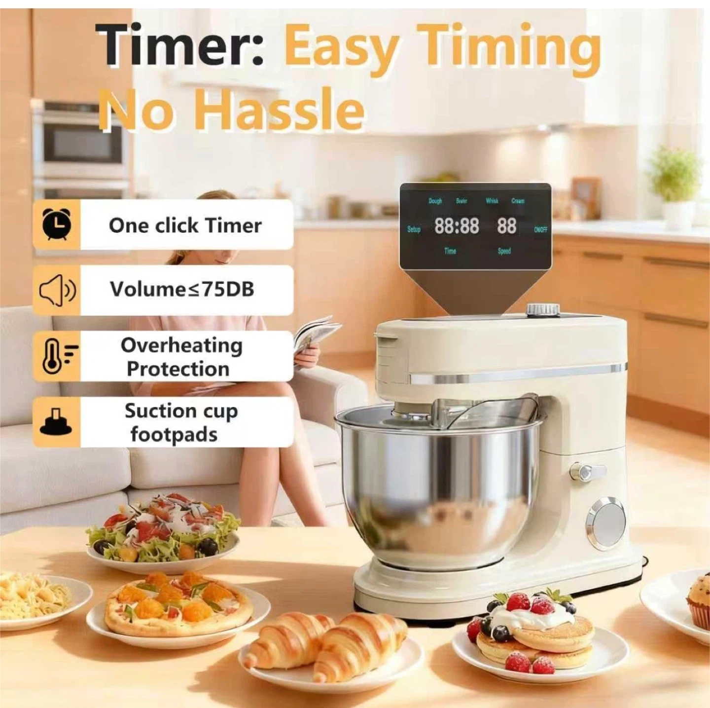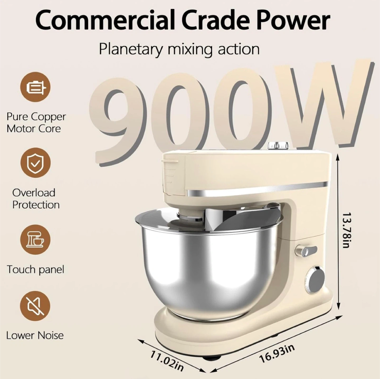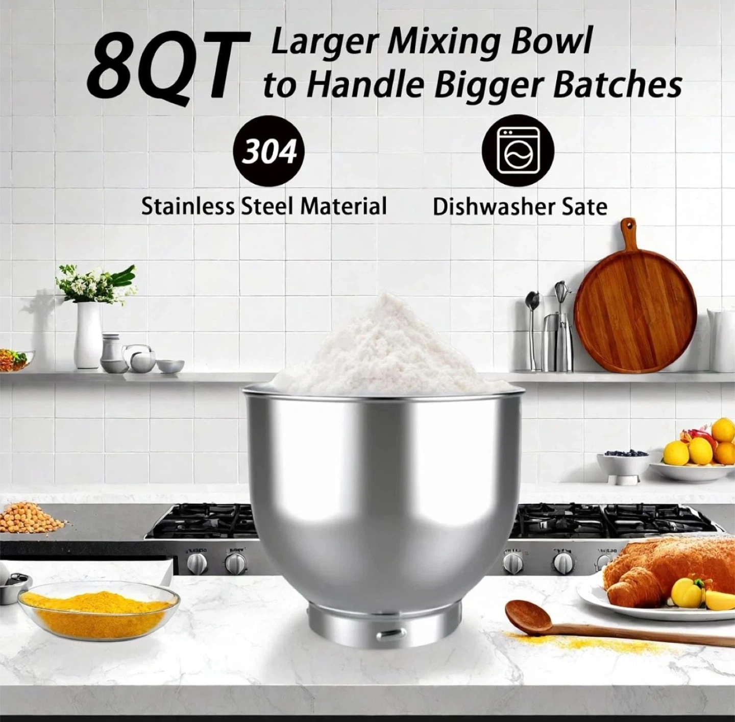 172900W Stand Mixer 8 QT kitchen Dough mixers LED Touch Screen Adjustable Speed Electric Household Mixers With Bowl,Dough Hook,Whisk And Beater For Baking, Cake,Pizza And Most Home Cooks