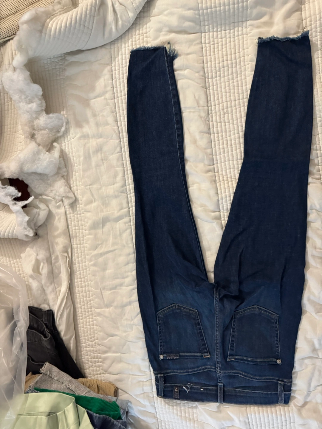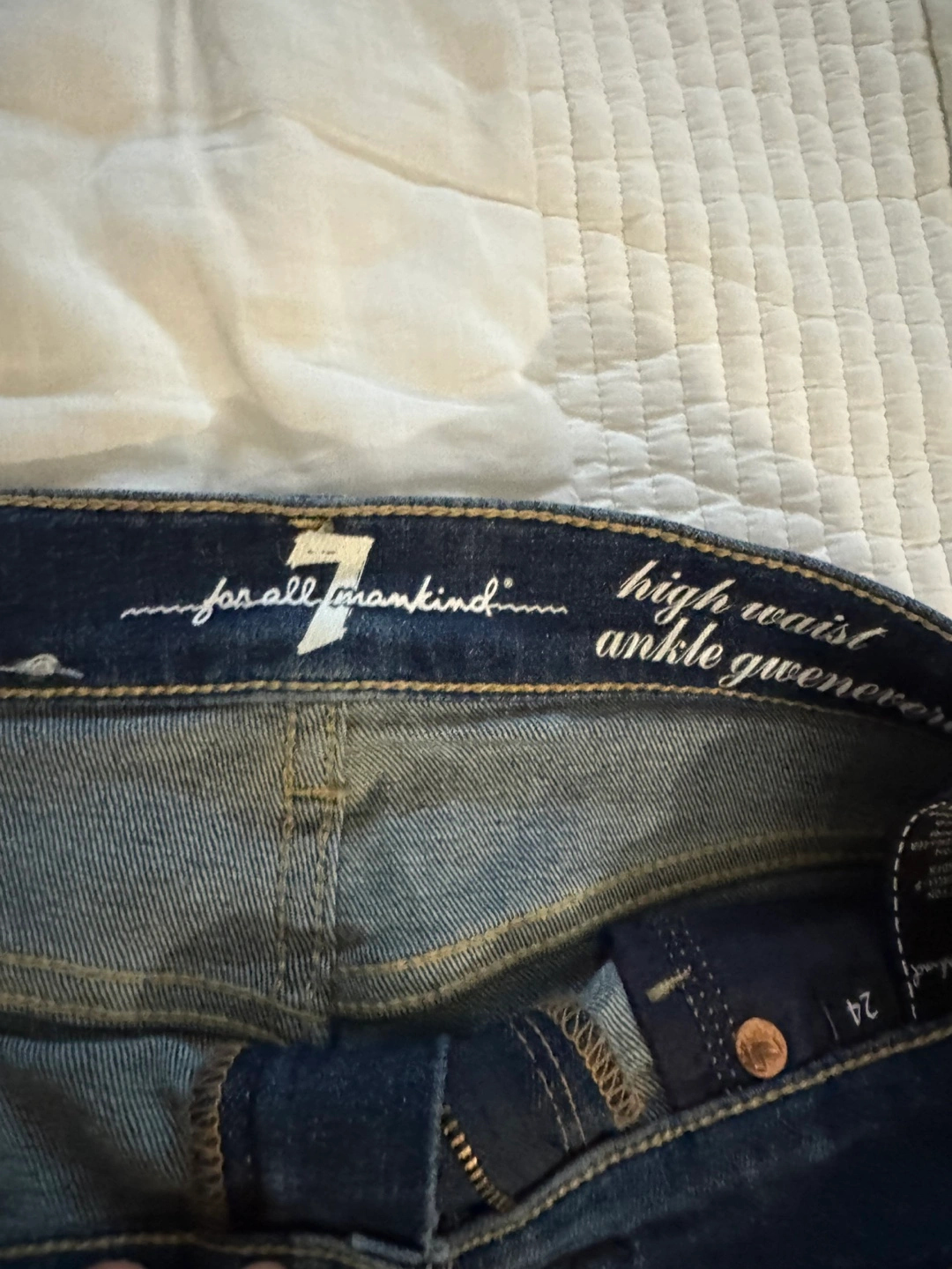 Selling a pair of 7 For All Mankind High Waist Ankle Gwenevere jeans. They are a size 24 and made of 94% cotton, 4% elastomultiester, and 2% spandex. These jeans are in great condition and ready for a new owner!